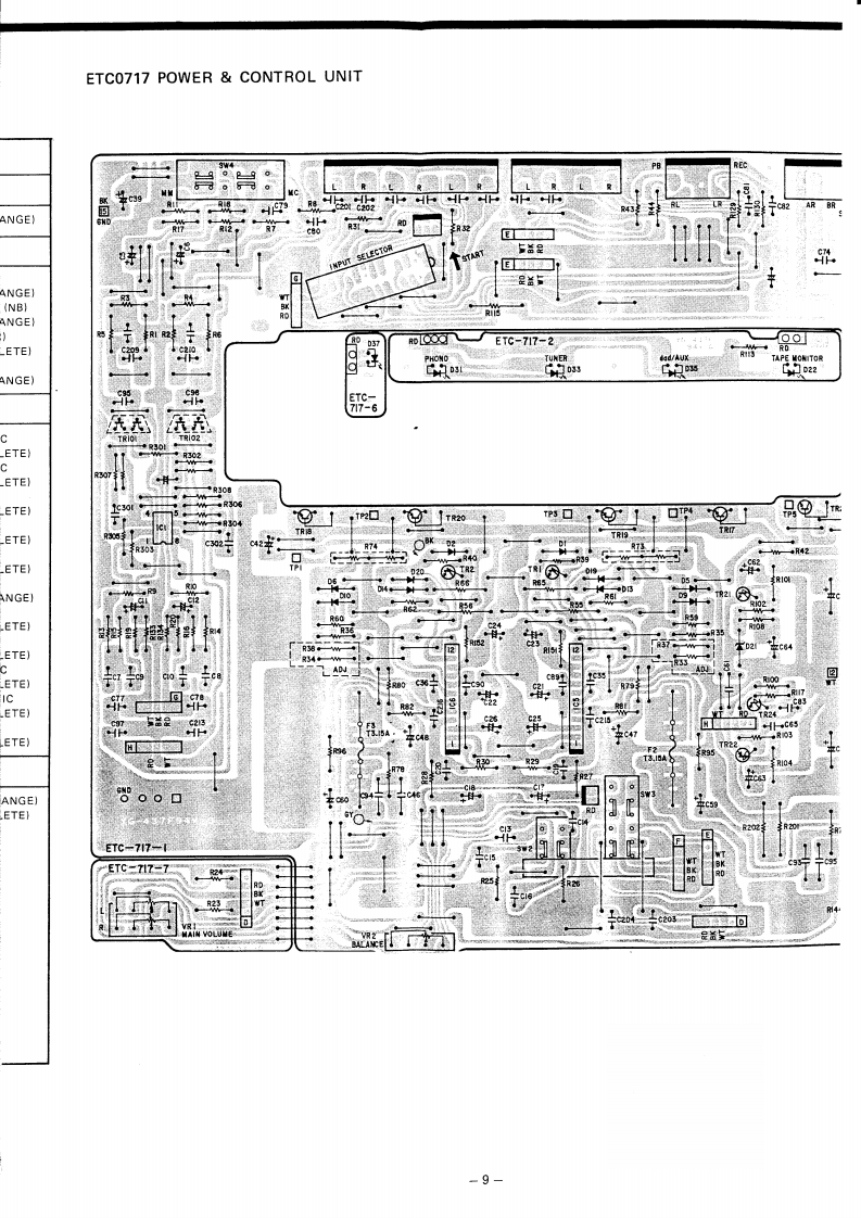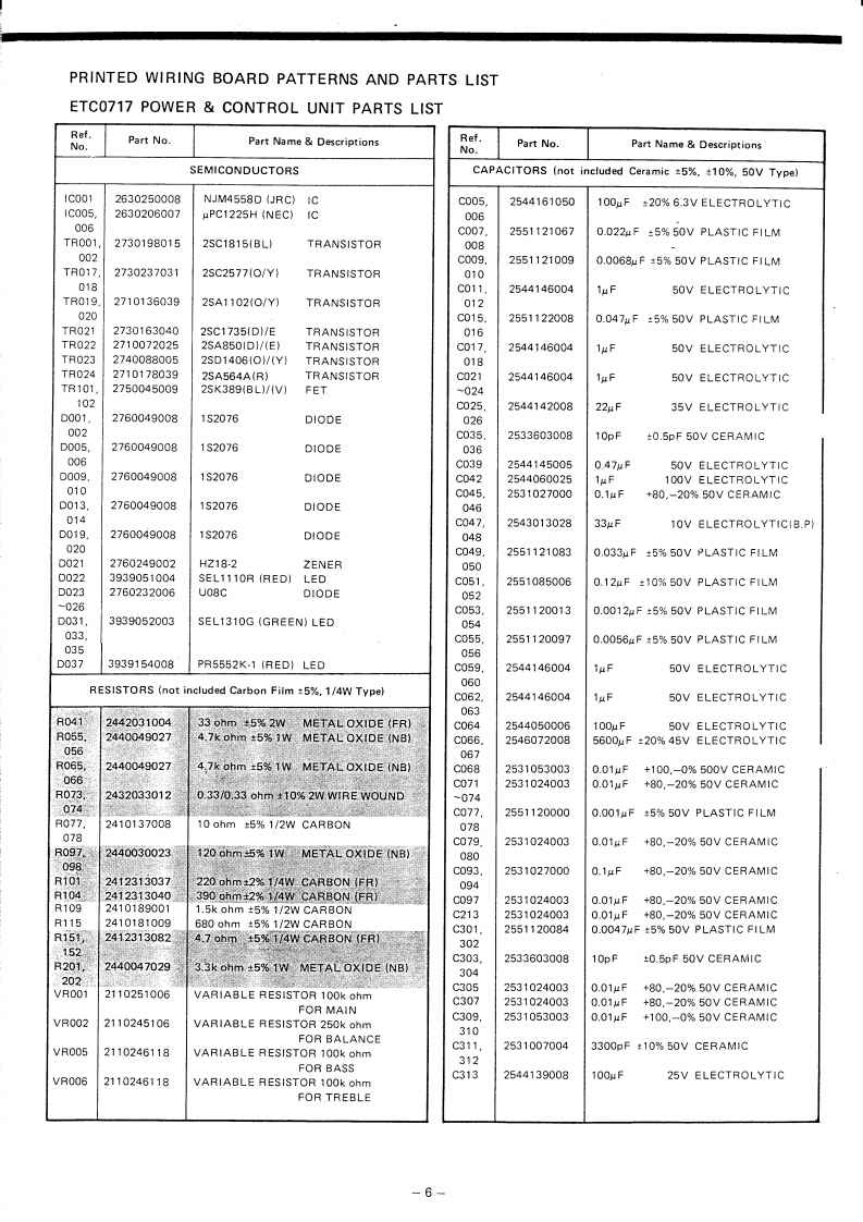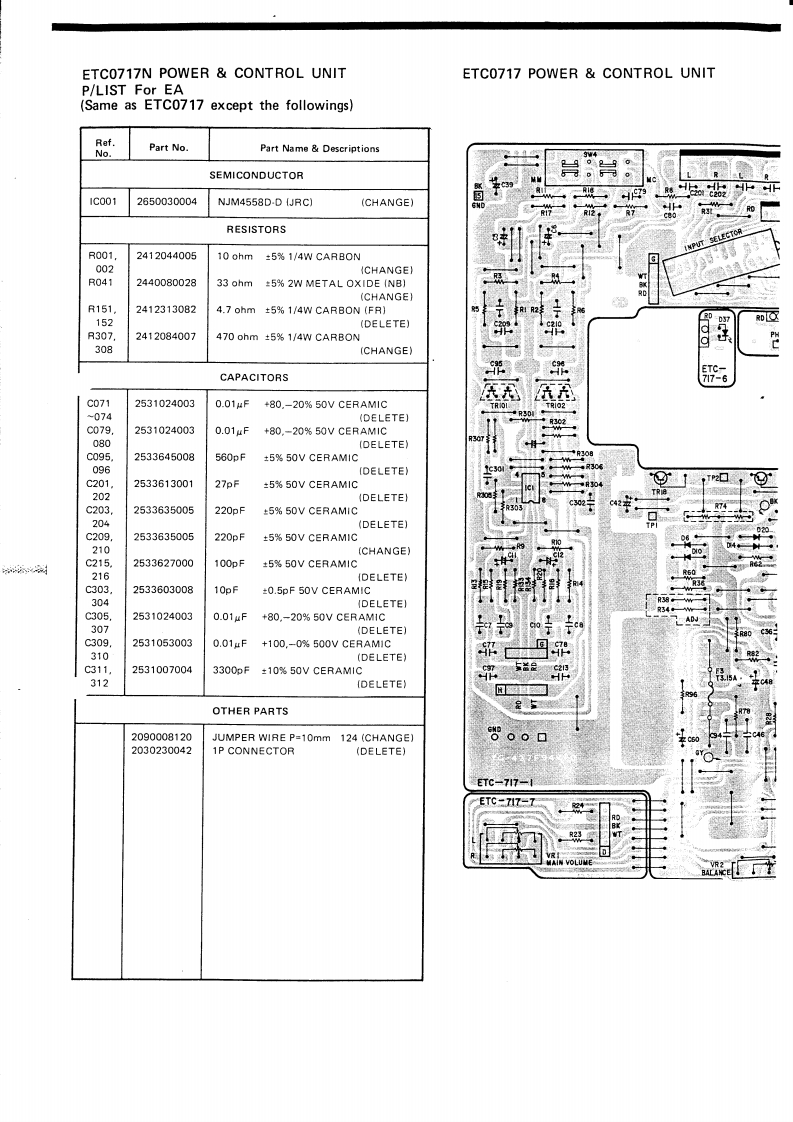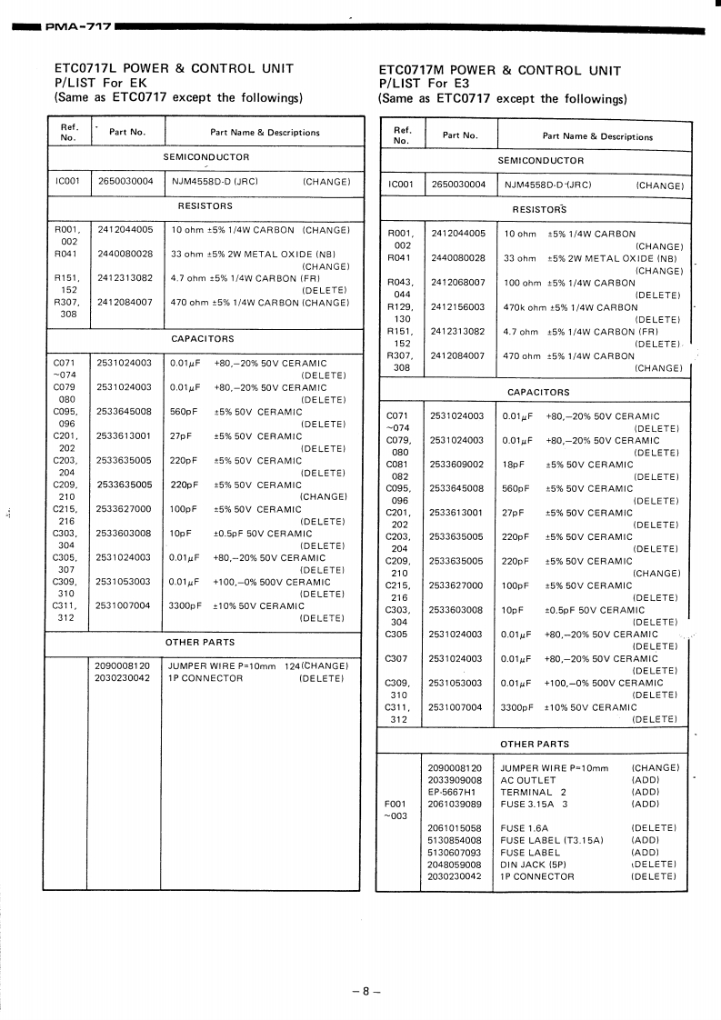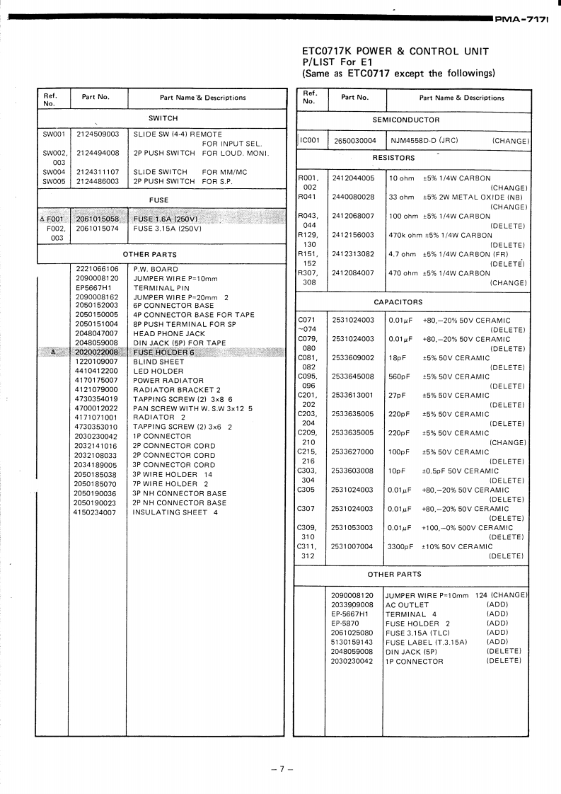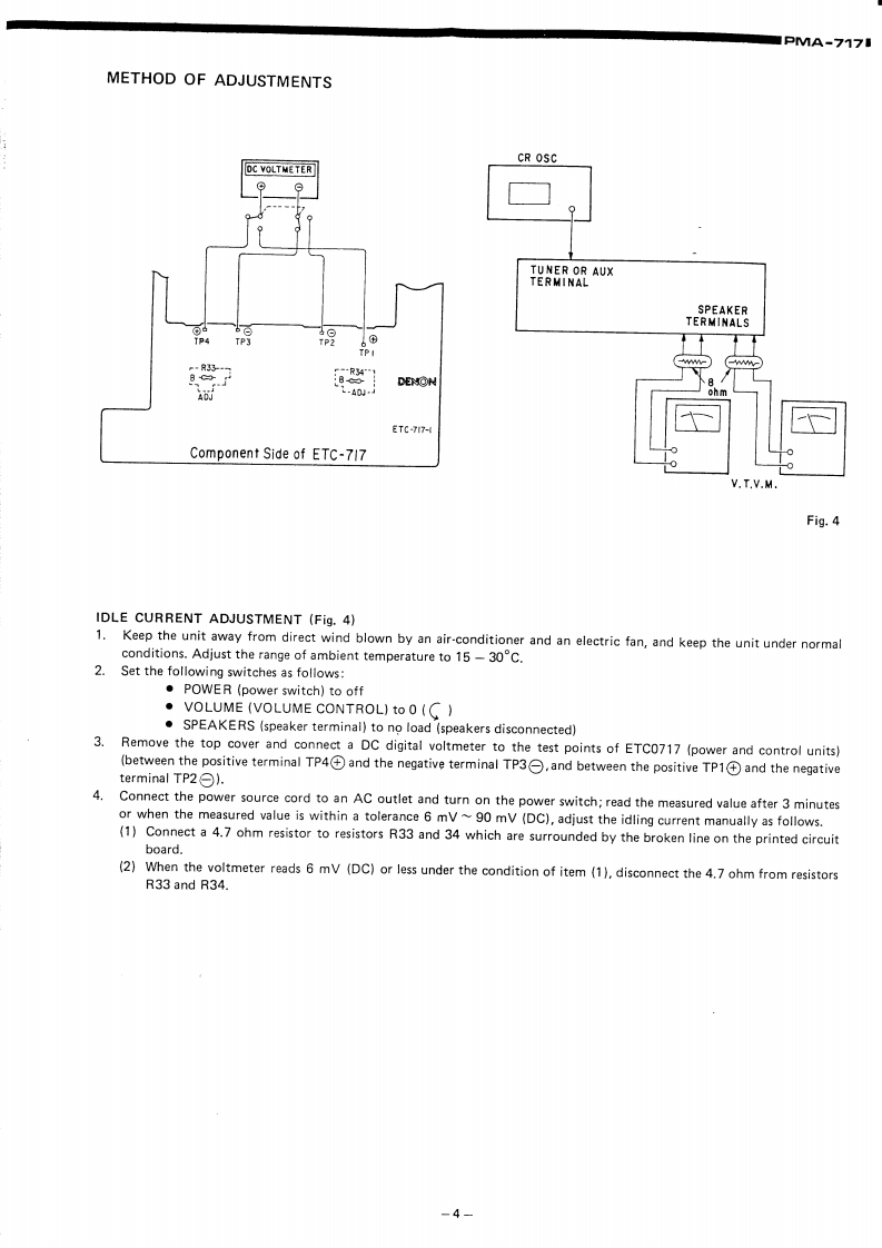 DENONHi-Fi Pre-Main AmplifierSERVICE MANUALMODEL PMA-717SOLID STATEPRE MAIN AMPLIFIERCONTENTSSPECIFICATIONSBLOCK DIAGRAM...............22DESIGNATION AND FUNCTIONS OF FRONT PANEL CONTROLS.....................CONNECTIONS............METHOD OF ADJUSTMENTSREMOVAL OF EACH SECTION ..PRINTED WIRING BOARD PATTERNS AND PARTS LISTETC0717 POWER CONTROL UNIT............................................6CONNECTION DIAGRAM.·8WIRING DIAGRAM.........................11SEMICONDUCTORS.........1EXPLODED VIEW OF CHASSIS AND CABINET P/LIST12NIPPON COLUMBIA CO,LTDAPR.198414