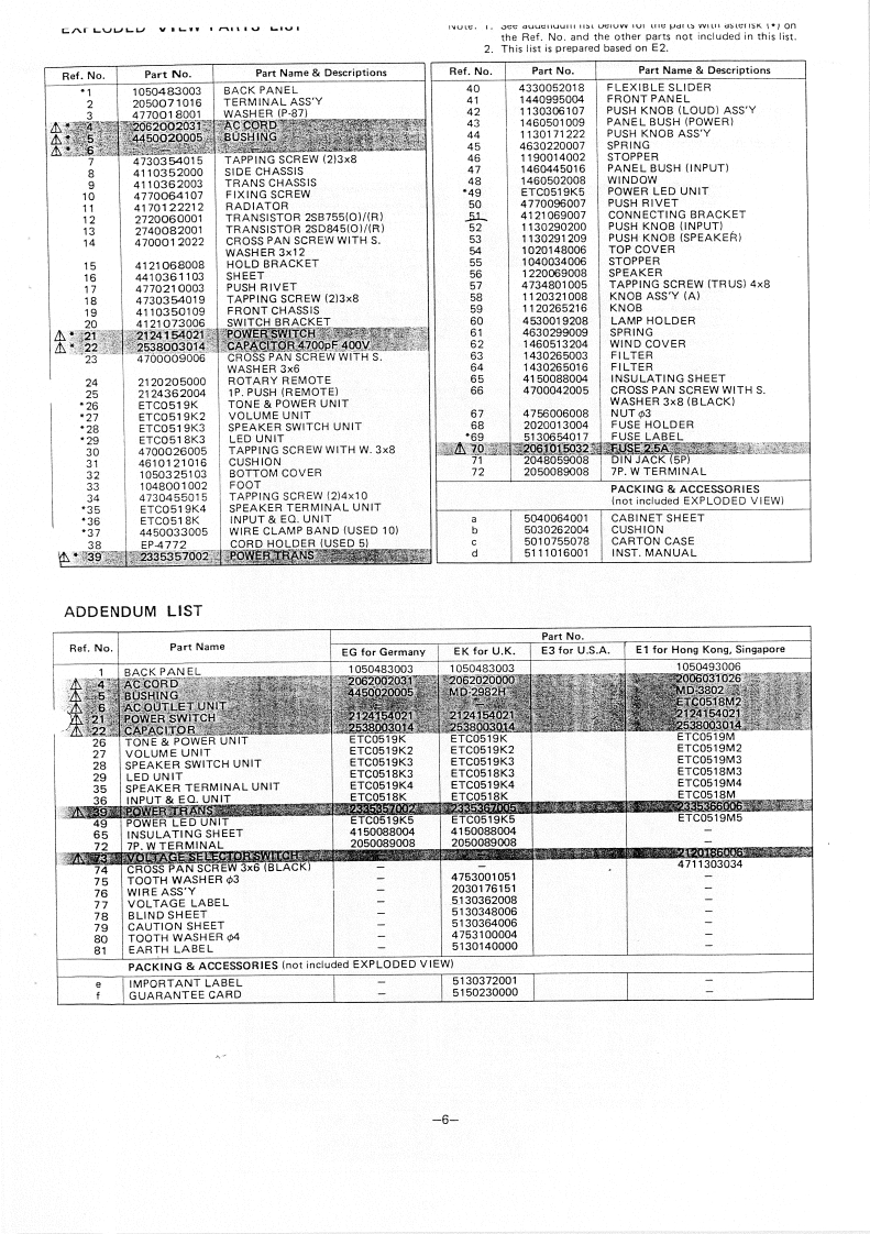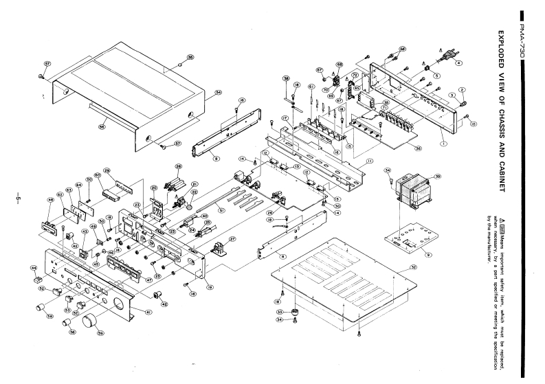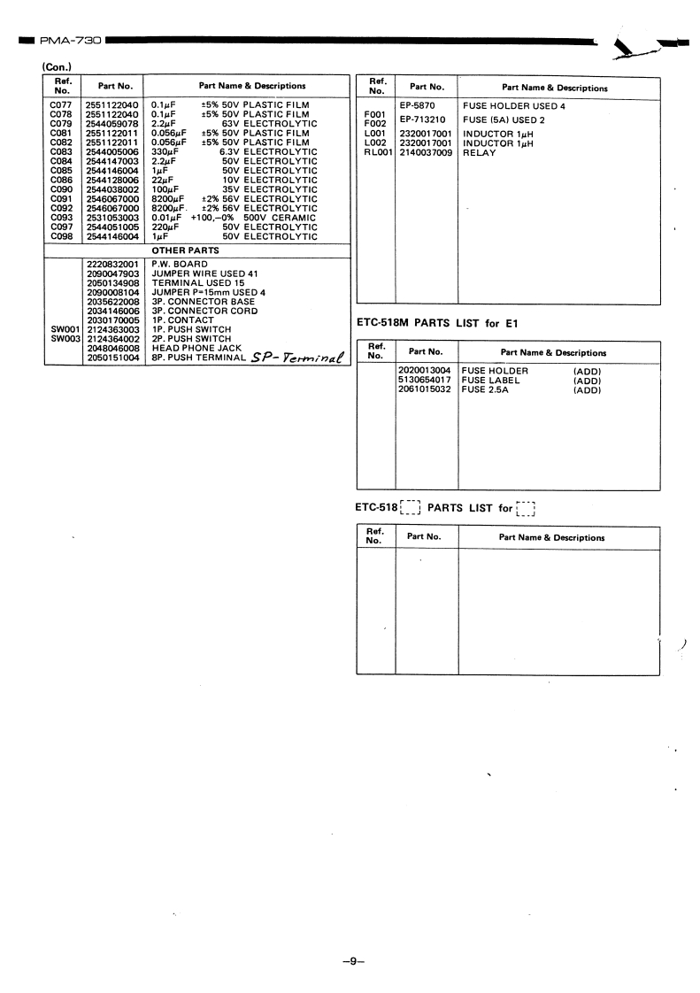 DENONHi-Fi Pre-Main AmplifierSERVICE MANUALMODEL PMA-730SOLID STATEPRE MAIN AMPLIFIERCONTENTSSPECIFICATIONS.....1DESIGNATIONS AND FUNCTIONS OF FRONT PANEL CONTROLSBL0 CK DIAGRAM,,,,,…·METHOD OF ADJUSTMENTS..................................................23EXPLODED VIEW OF CABINET CHASSIS5EXPLODED VIEW PARTS LIST..........6PRINTED WIRING BOARD PATTERNS AND PARTS LISTINPUT EQ.UNIT ETC-518K,M..,79POWER AMP UNIT ETC-519K,M.............................................11WIRING DIAGRAM,,···10CONNECTION DIAGRAM,,,.,··.·..·,BOTTOMNIPPON COLUMBIA CO..LTD