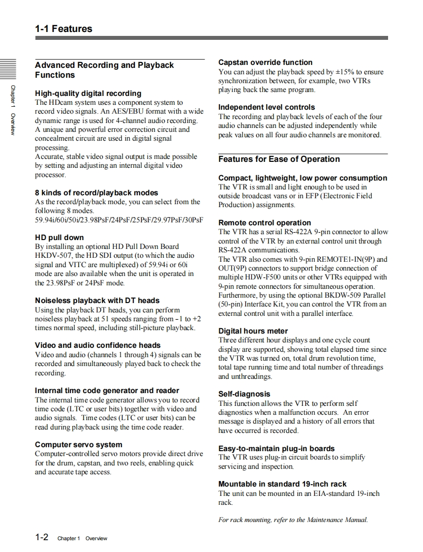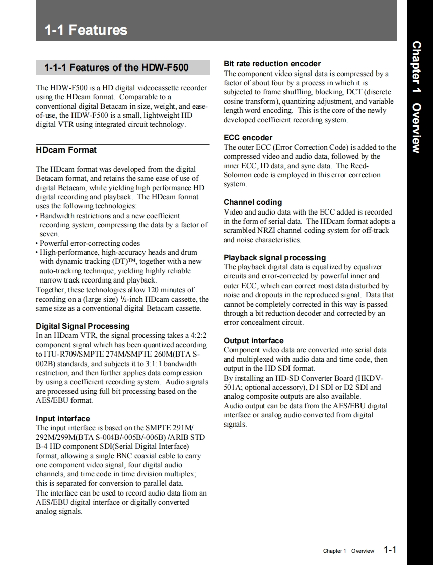 SONYHD DIGITAL VIDEOCASSETTE RECORDERHDW-F500PARALLEL INTERFACE KITBKDW-509HD-525 DOWNCONVERTER BOARDHKDV-501AHD LINE CONVERTER BOARDHKDV-502HD DIGITAL VIDEO CONTROLLERHKDV-503SDTI BOARDHKDV-506AHD PULL DOWN BOARDHKDV-507HDCAMISROPERATION MANUALEnglish1st EditionSerial No.10101 and Higher