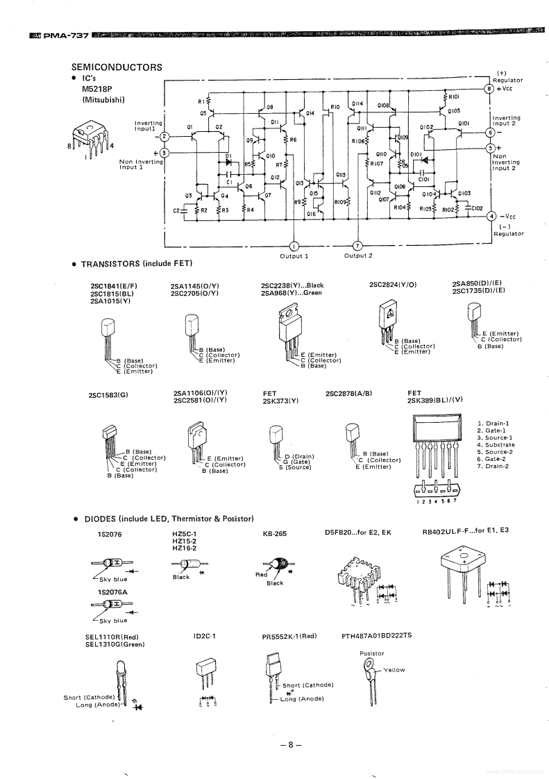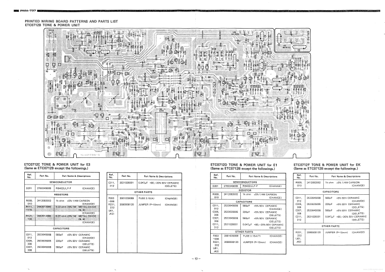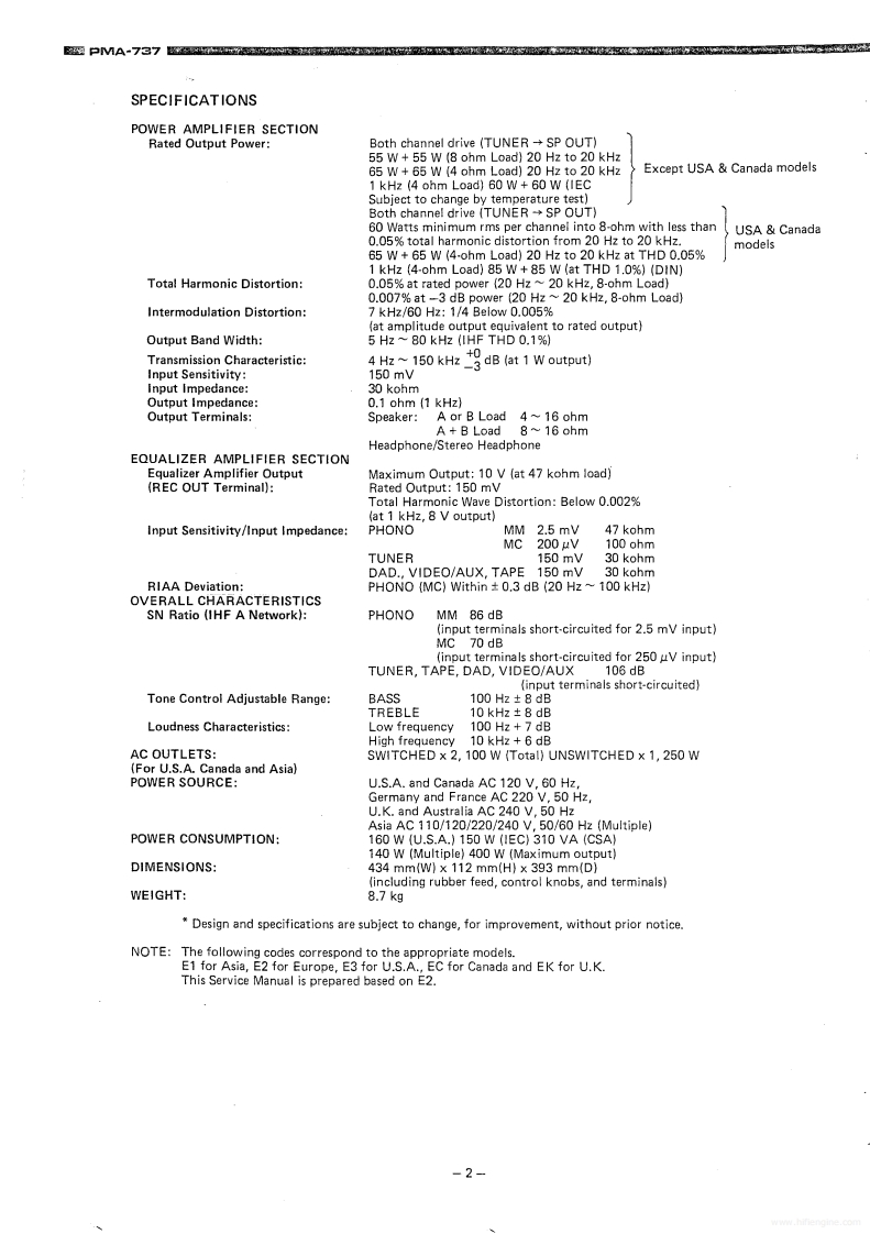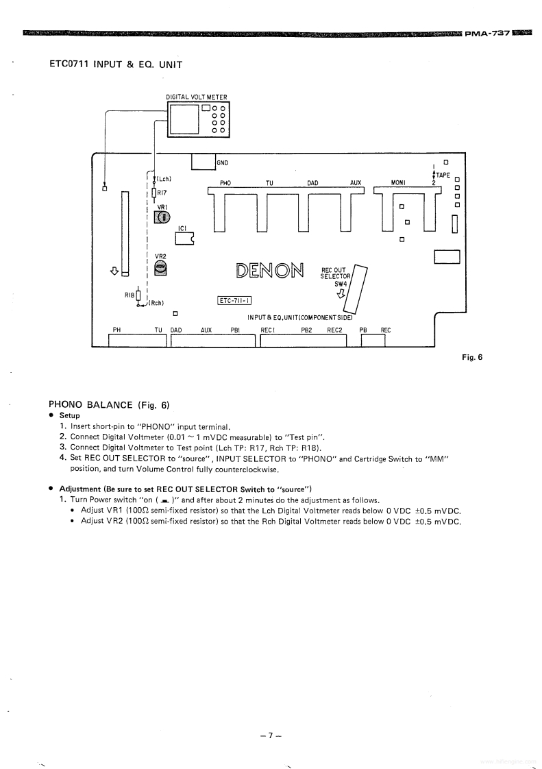 DENONFOREUROPEAN,U.K.,U.S.A.,ASIA MODELSHi-Fi Pre-Main AmplifierSERVICE MANUALMODEL PMA-737SOLID-STATEPRE MAIN AMPLIFIER·111美CONTENTSSPECIFICATIONS…2CONTROLS AND THEIR DESCRIPTION,,,,,,,,,,,····.··········,······,··CONNECTIONS....BLOCK,LEVEL DIAGRAM.·,..·.:.·345METHOD OF ADJUSTMENTS.............67SEMICONDUCTORS.............CONNECTION DIAGRAM..9ETC0712B TONE POWER UNIT ...10,11ETC0741 C-UNIT.......11CTC0711 INPUT&EQ UNIT.,·..·.12~13ADDENDUM LIST.,,,·WIRING DIAGRAM....15EXPLODED VIEW OF CHASSIS AND CABINET16NIPPON COLUMBIA CO..LTD.FEB.1984
