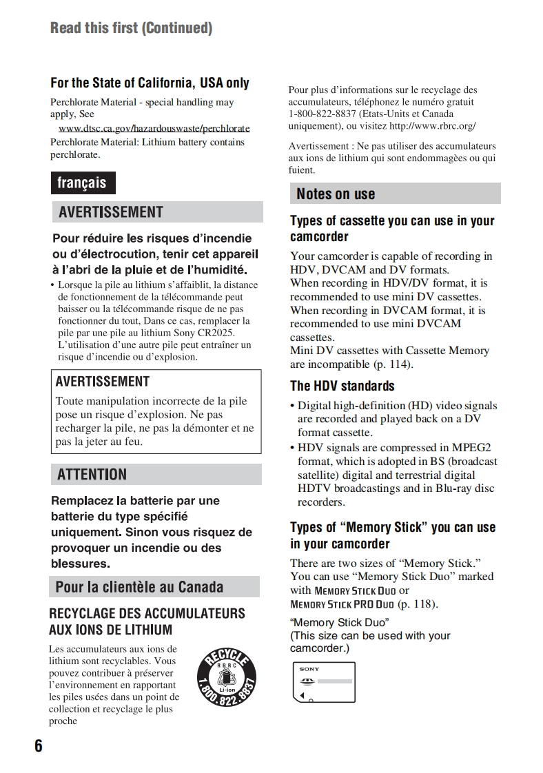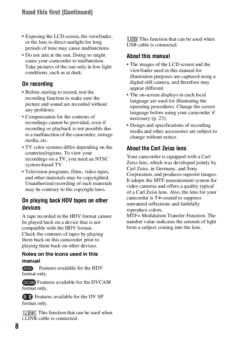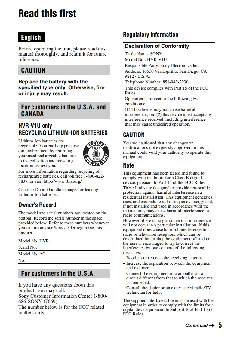 SONY2-887-519-11(1)Digital HD VideoCamera RecorderCamescopenumerique HDOperating GuideBefore operating the unit,please read this manual thoroughly,and retain it for future referenceThe supplied CD-ROM includes Operating Guide for the HVR-V1 series.(Japanese,English,French,German,Italian,Spanish,and Simplified Chineseversions).For more details,see "Using the CD-ROM Manual"on page 12.Le CD-ROM fourni contient le mode d'emploi de la serie HVR-V1(en japonais,anglais,francais,allemand,italien,espagnol et chinois simplifie).Pour de plus amples renseignements,consultez la section Using the CD-ROMManual》a la page 12.DDVCAMMnDHDV 1080iInfoLITHIUMnH▣nISERIESMEMORY STICK TMHVR-V1U/V1N2006 Sony Corporation