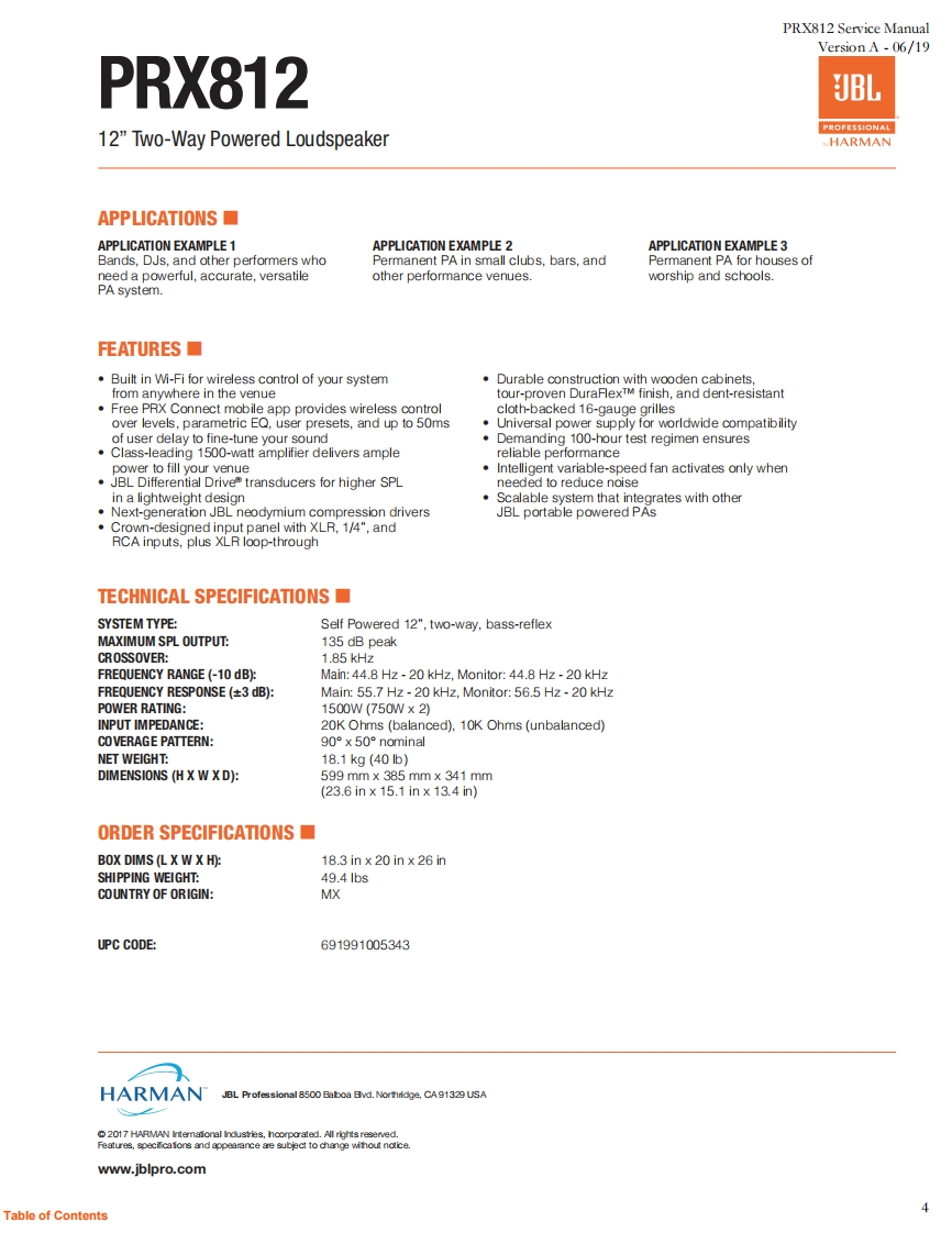 JBL_PRX812W_ServiceManual_vA维修手册电器原理图找手册网3天前发布关注私信3.44MB24页033JBL_PRX812W_ServiceManual_vA维修手册电器原理图此内容为付费资源,请付费后查看¥19¥21黄金会员免费钻石会员免费立即购买您当前未登录!建议登陆后购买,可保存购买订单付费资源 第1页 / 共24页 第2页 / 共24页 第3页 / 共24页 第4页 / 共24页 第5页 / 共24页 第6页 / 共24页 第7页 / 共24页 第8页 / 共24页 第9页 / 共24页 第10页 / 共24页 试读已结束,还剩14页,您可下载完整版后进行离线阅读 THE ENDJbl/Onkyo 文本预览 Version A-06/19JBLPROFESSIONALHARMANService ManualPRX81212"Two-Way Full-Range Main System/Floor Monitor with Wi-FiHARMANA SAMSUNG COMPANY 查看更多 收起部分 喜欢就支持一下吧收藏