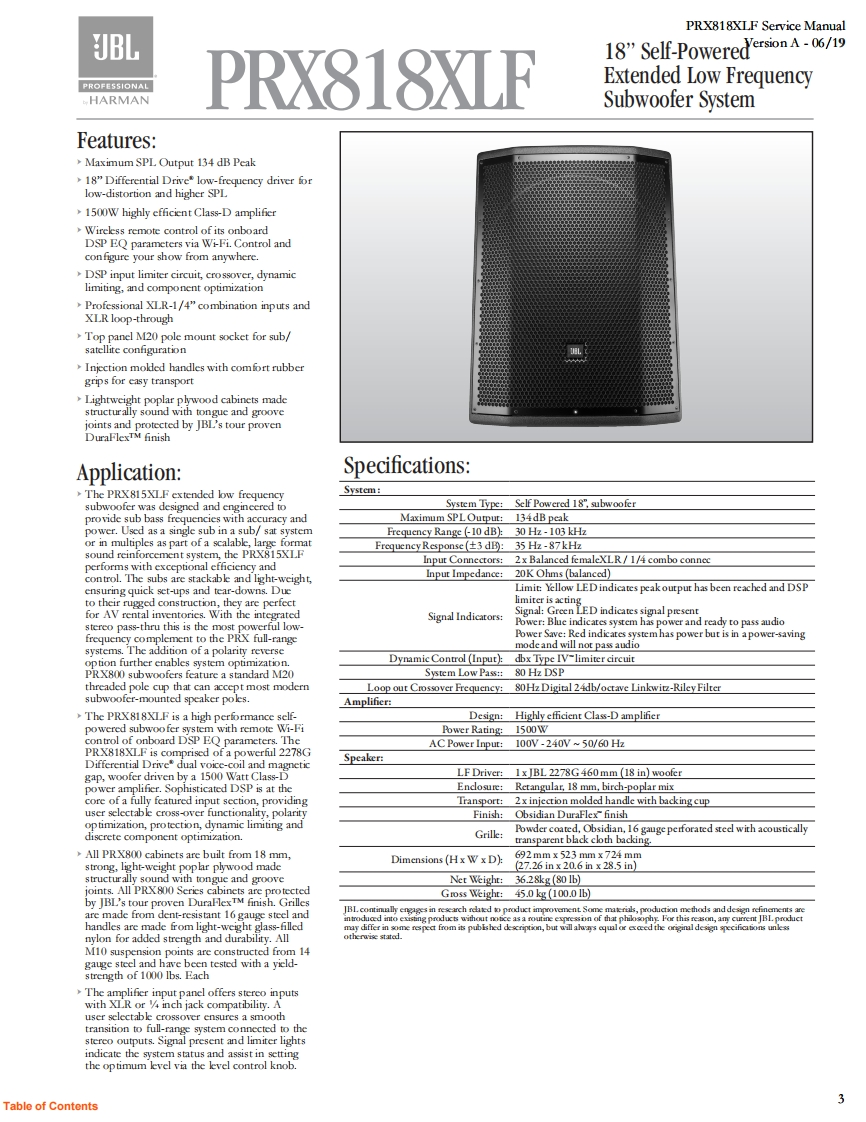 JBL_PRX818XLFW_ServiceManual_vA维修手册电器原理图找手册网3天前发布关注私信3.77MB23页051JBL_PRX818XLFW_ServiceManual_vA维修手册电器原理图此内容为付费资源,请付费后查看¥19¥21黄金会员免费钻石会员免费立即购买您当前未登录!建议登陆后购买,可保存购买订单付费资源 第1页 / 共23页 第2页 / 共23页 第3页 / 共23页 第4页 / 共23页 第5页 / 共23页 第6页 / 共23页 第7页 / 共23页 第8页 / 共23页 第9页 / 共23页 第10页 / 共23页 试读已结束,还剩13页,您可下载完整版后进行离线阅读 THE ENDJbl/Onkyo 文本预览 Version A-06/19JBLPROFESSIONALHARMANService ManualPRX818XLF18"Self-Powered Extended Low Frequency Subwoofer System with Wi-FiHARMANA SAMSUNG COMPANY 查看更多 收起部分 喜欢就支持一下吧收藏
