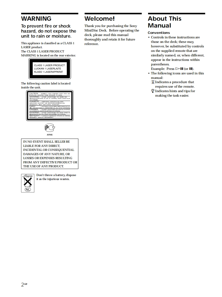 sony_mds-lsa1_operation_manual_1_找手册网30天前发布关注私信0.90MB96页048sony_mds-lsa1_operation_manual_1_此内容为付费资源,请付费后查看¥19¥21黄金会员免费钻石会员免费登录购买付费资源 第1页 / 共96页 第2页 / 共96页 第3页 / 共96页 第4页 / 共96页 第5页 / 共96页 第6页 / 共96页 第7页 / 共96页 第8页 / 共96页 第9页 / 共96页 第10页 / 共96页 试读已结束,还剩86页,您可下载完整版后进行离线阅读 THE END索尼 文本预览 SONY4-227-585-13(2)MiniDisc DeckOperating InstructionsGBMode d'emploi.FRS200MDLPMDS-LSA12000 Sony Corporation 查看更多 收起部分 喜欢就支持一下吧收藏