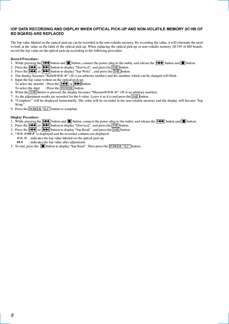 MDS-LSA1SERVICE MANUALAEP ModelUK Model回·回回US and foreign patents licensed from Dolby LaboratoriesModel Name Using Similar MechanismNEWLicensing Corporation.MD Mechanism TypeMDM-7X2BOptical Pick-up TypeKMS-262A/1NSPECIFICATIONSSystemMiniDisc digital audio systemInputs/outputsDiscMiniDisci.LNK S200Jack type:4-pins to 4-pinsLaserSemiconductor laser(饩=780nm)Emission duration:continuousGeneralLaser outputLess than 44.6 uwPower requirements230 V AC.50/60 HzThis output is the value measuredPower consumption18Wat a distance of 200 mm from theDimensions (approx.)430 x 70 x 315 mm (w/h/d)incl.objective lens surface on the Opticalprojecting parts and controlsPick-up Block with 7mm aperture.Mass (approx.)44kgLaser diodeMaterial:GaAlAsRevolutions (CLV)400 pm to 900 rpmSupplied accessoriesError comectionACIRC (Advanced Cross Interleavei.LINK connecting cable (1)Reed Solomon Code)Remote commander (remote)(1)Sampling frequency44.1 kHzCodingATRAC (Adaptive TRansfomDesign and specifications are subject to change without notice.Acoustic Coding)/ATRAC3Modulation systemEFM (Eight-to-Fourteen Modulation)Number of channels2 stereo channelsFrequency response5to20.000Hh03dBSignal-to-noise ratioOver 100 dB during playbackWow and flutterBelow measurable limitMINIDISC DECKSONY