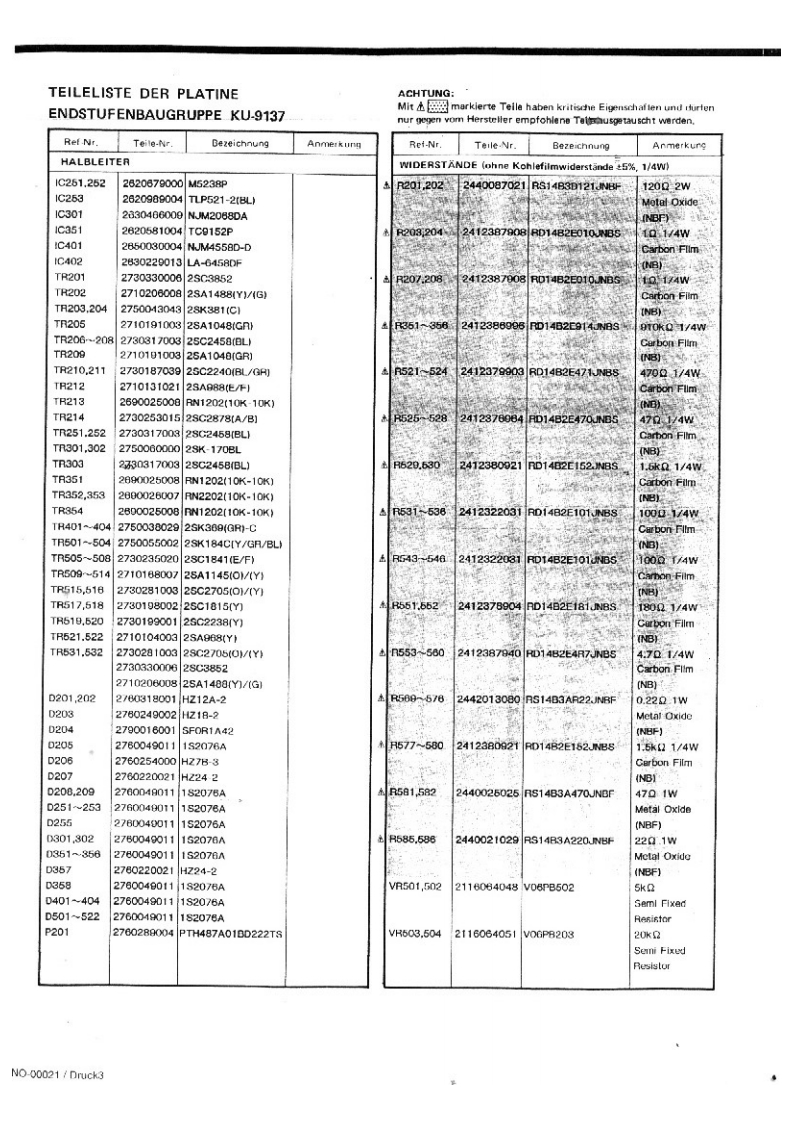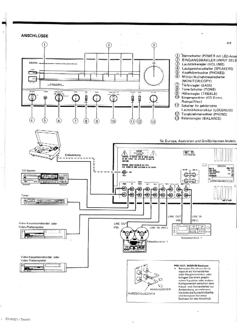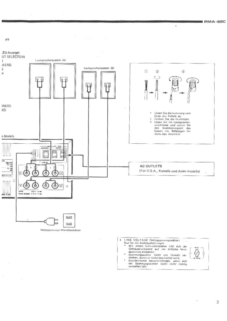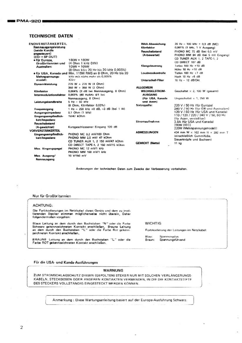 DENONntegrierter Hi-Fi-StereoverstarkerWARTUNGSANLEITUNGTYP PMA-92▣INTEGRIERTER STEREOVERSTARKERINHALTTECHNISCHE DATEN,,,,,,,····,··,·,,2ANSCHL0SSE.,·ZERLEGEN.......·4EINSTELLUNG.5BLOCKSCHALTBILD5HALBLEITER6TEILELISTE DER PLATINE,,.,,,·,,,··7.8PLATINENETZTEIL-UND KLANGREGELBAUGRUPPE KU-9I38(Europa austuhrung)..·..···.·.NETZTEIL-UND KLANGREGELBAUGRUPPE KU-9141 (Ausfuhrung fiur USA und KanadaENDSTUFENBAUGRUPPE KU-913711ANSCHLUSSDIAGRAMM........1SCHALTPLANEXPLOSIONSZEICHNUNG VON CHASSIS UND GEHAUSE UND TEILELISTE·.··,..,.,·14ZUSATZLISTE,,,,15NIPPON COLUMBIA CO..LTD.