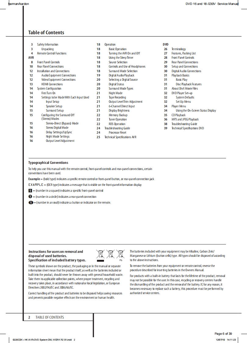 harman/kardonDVD 16 and 18/230V Service Manualharman/kardonService ManualDVD16/230DVD18/230DVD playersOnly sold with AVR 139 and AVR 141 as AVR/DVD combos 13916,13918,14116,14118..CONTENTSESD PRECAUTIONS2TROUBLESHOOTING GUIDE16SERVICING PRECAUTIONSTECHNICAL SPECIFICATIONS17OWNER'S MANUAL FRONT PAGE 5SOFTWARE CHECK UPGRADE 18OM TABLE OF CONTENTS6TROUBLESHOOTING CHARTS19REMOTE CONTROL FUNCTIONS 7EXPLODED VIEW24AVR/DVD SYSTEM CONNECTIONS 11DVD 16 SERVICE PARTS25FEATURES12DVD 18 SERVICE PARTS6FRONT PANEL CONTROLS13PCB DRAWNGS27REAR PANEL CONNECTIONS14WRING DIAGRAM31SETUP AND CONNECTIONS15SCHEMATIC DIAGRAMS32-39Released EU2010Harman Consumer Group,Inc.Rev0,09/20108500 Balboa Boulevard.Northridge,California 91329Page 1 of 39
