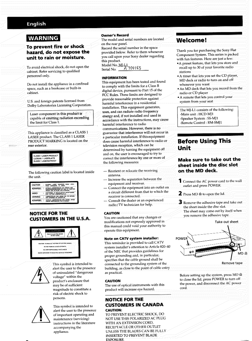 sony_mjl1_操作说明书手册找手册网30天前发布关注私信1.71MB35页022sony_mjl1_操作说明书手册此内容为付费资源,请付费后查看¥19¥21黄金会员免费钻石会员免费登录购买付费资源 第1页 / 共35页 第2页 / 共35页 第3页 / 共35页 第4页 / 共35页 第5页 / 共35页 第6页 / 共35页 第7页 / 共35页 第8页 / 共35页 第9页 / 共35页 第10页 / 共35页 试读已结束,还剩25页,您可下载完整版后进行离线阅读 THE END索尼 文本预览 SONY3-810-991-51(1)Flat ComponentSystemOperating Instructions腰MJ-L11996 by Sony Corporation 查看更多 收起部分 喜欢就支持一下吧收藏
