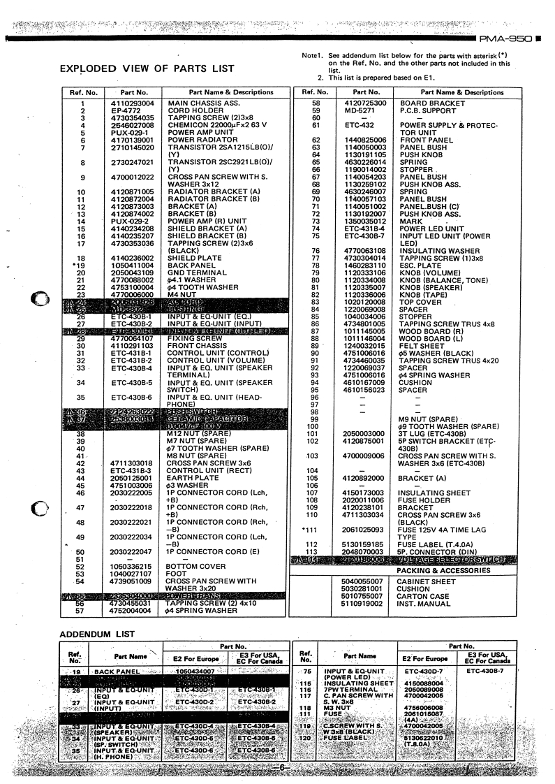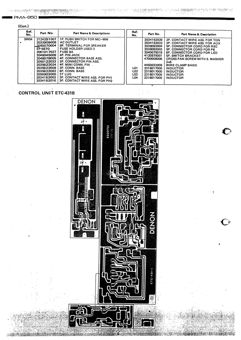 DENONHi-Fi Pre-Main AmplifierSERVICE MANUALMODEL PMA-95▣PRE MAIN AMPLIFIERCONTENTSSPECIFICATIONS………BL0 CK DIAGRAM…”42METHOD OF ADJUSTMENTS.CONNECTION DIAGRAM..................................................4EXPLODED VIEW OF CABINET CHASSISEXPLODED VIEW OF PARTS LIST6PRINTED CIRCUIT BOARD PATTERNS AND PARTS LISTINPUT EQ.UNIT ETC-430BCONTROL UNIT ETC431B.................................................POWER AMP.UNIT PUS-029...11POWER'SUPPLY PROTECTOR UNIT ETC-432.................................15WIRING DIAGRAM:…16NIPPON COLUMBIA CO LTD