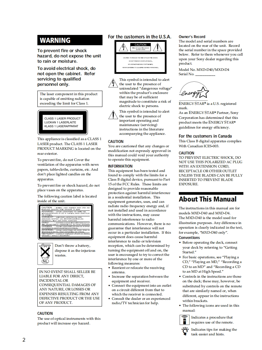 sony_mxdd40找手册网30天前发布关注私信0.82MB52页035sony_mxdd40此内容为付费资源,请付费后查看¥19¥21黄金会员免费钻石会员免费登录购买付费资源 第1页 / 共52页 第2页 / 共52页 第3页 / 共52页 第4页 / 共52页 第5页 / 共52页 第6页 / 共52页 第7页 / 共52页 第8页 / 共52页 第9页 / 共52页 第10页 / 共52页 试读已结束,还剩42页,您可下载完整版后进行离线阅读 THE END索尼 文本预览 SONY4-229-644-15(1)Compact DiscMiniDisc DeckOperating Instructions图d56DIGITAL AUDIOTEXT■MDLPMXD-D40MXD-D42000 by Sony Corporation 查看更多 收起部分 喜欢就支持一下吧收藏