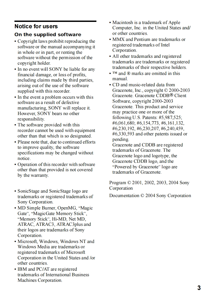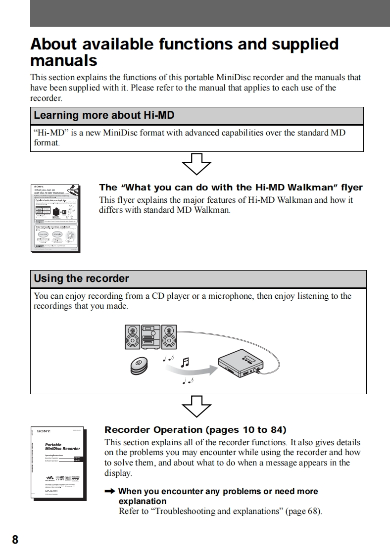 SONY3-266469-11(1)PortableMiniDisc RecorderOperating InstructionsRecorder Operationpage 10Software Operationpage 86Hi-MDMiniNetM▣AUDIO腾MDLPWLKmn"WALKMAN"is a registered trademark of Sony Corporation torepresent Headphone Stereo products.is atrademark of Sony Corporation.MZ-NH7002004 Sony Corporation