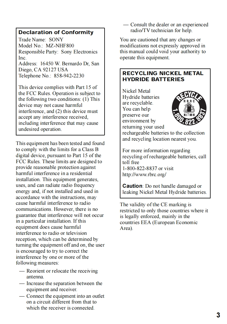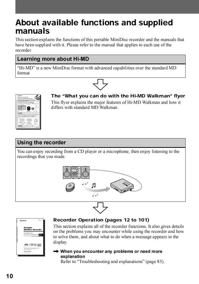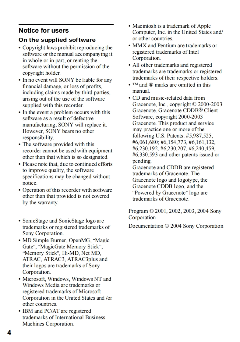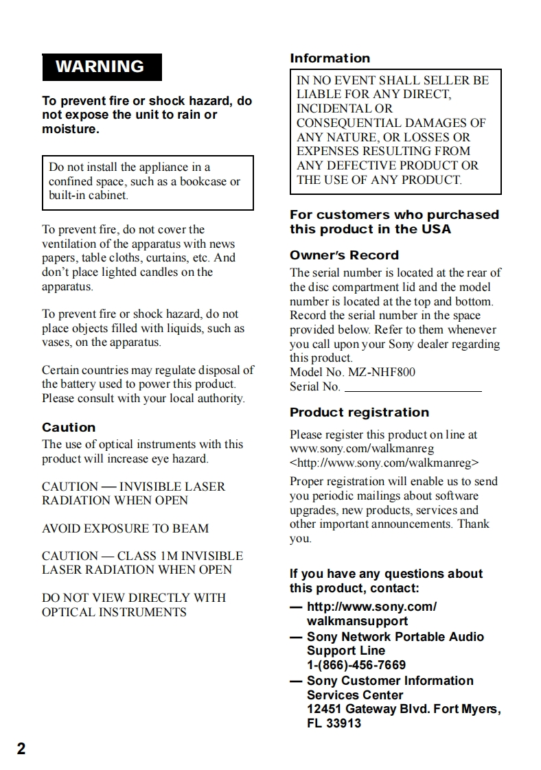 SONYSONY3-266-571-91(1)PortablePortable MiniDisc RecorderMiniDisc RecorderOperating InstructionsRecorder Operationpage 12Software Operationpage 102MZ-NHF800w.HiMDMiniNetM▣AUDIOD腾WLKmnMDLP"WALKMAN"is a registered trademark of Sony Corporation torepresent Headphone Stereo products.is atrademark of Sony Corporation.MZ-NHF8002004 Sony Corporation