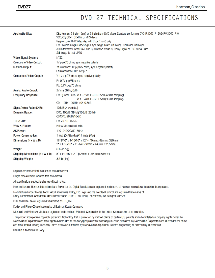 HarmanKardon-DVD27-cd-维修说明书手册含电器原理图
