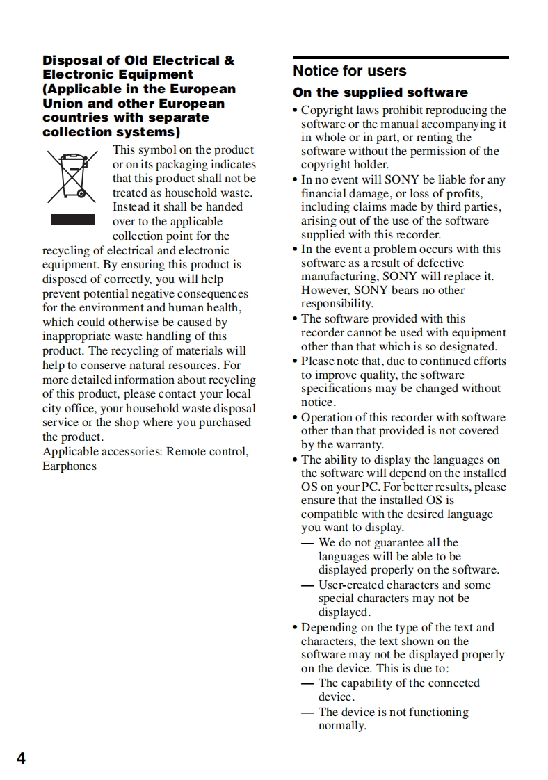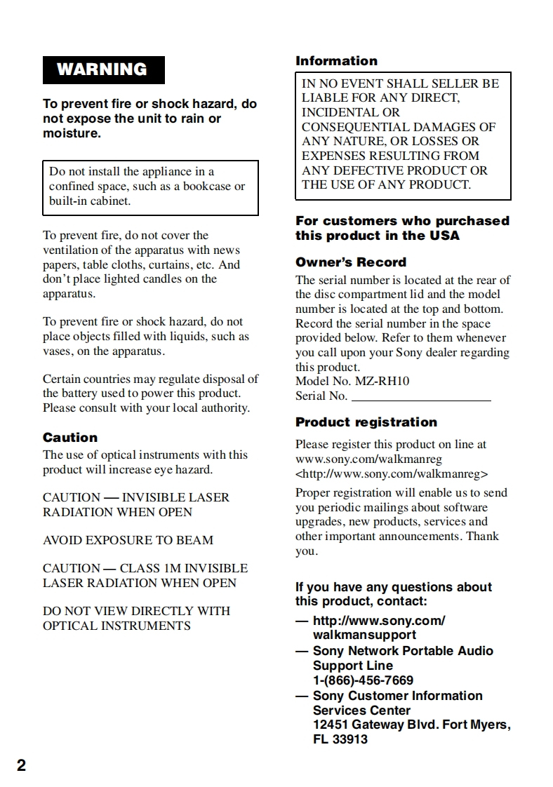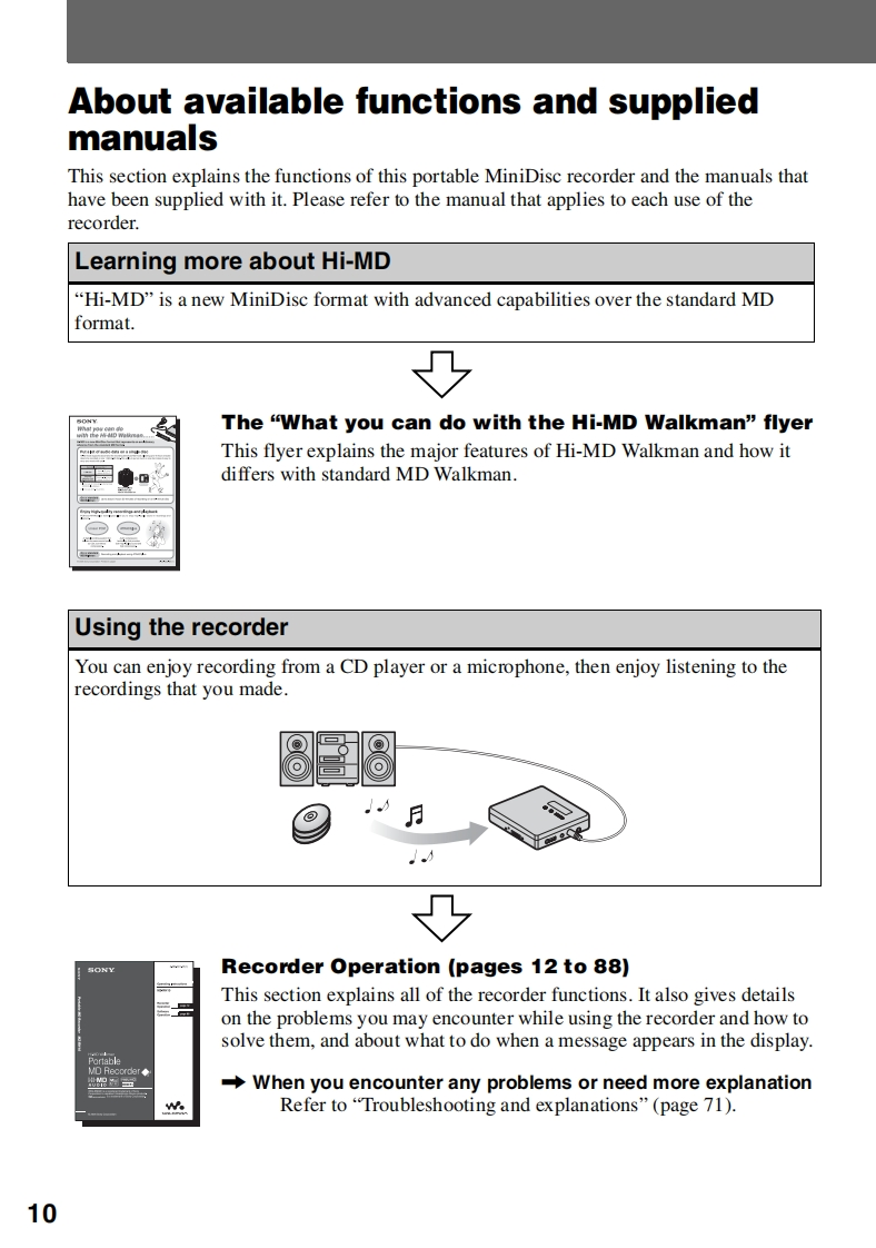 2-589-801-11(1)This warranty is valid only in the United States.SONSONYSONYPortsbla CD PlrperPortablaIC Auco HapetOperating InstructionsPortable AudoLIMITED WARRANTYMZ-RH10ony Dactronics.Scnw门wmr电t恤rduct(nng amy criesagan d事materialarCTar山EIDWEdPortableRecorderOperationpage 12定SoftwareOperationpage 90on prot,作5tRecorders0yin时6w】MZ-RH10LAn PURPOSE ON THIS PROCUCT IS LIVITED IN DUNTIN TO THE DURATION OF THE WWIANTY.Hi-MD WalkmanPortableMD Recorderw.TTia作aFs1p0Hi-MDNEtM▣Fn6w0m时enn项Ltf0m0r6d00lAUDIOD临MDLPH00-138-60NY0866WALKMAN B a registeed trademark of SonyD对4410CorporaSon to repesent Headphone Stereo products.W.uaLrran is a trademark of Sony Corporaton.ecolnfo】http://www.sony.net258860111(1)woPrinted in Malaysia2005 Sony CorporationWLK