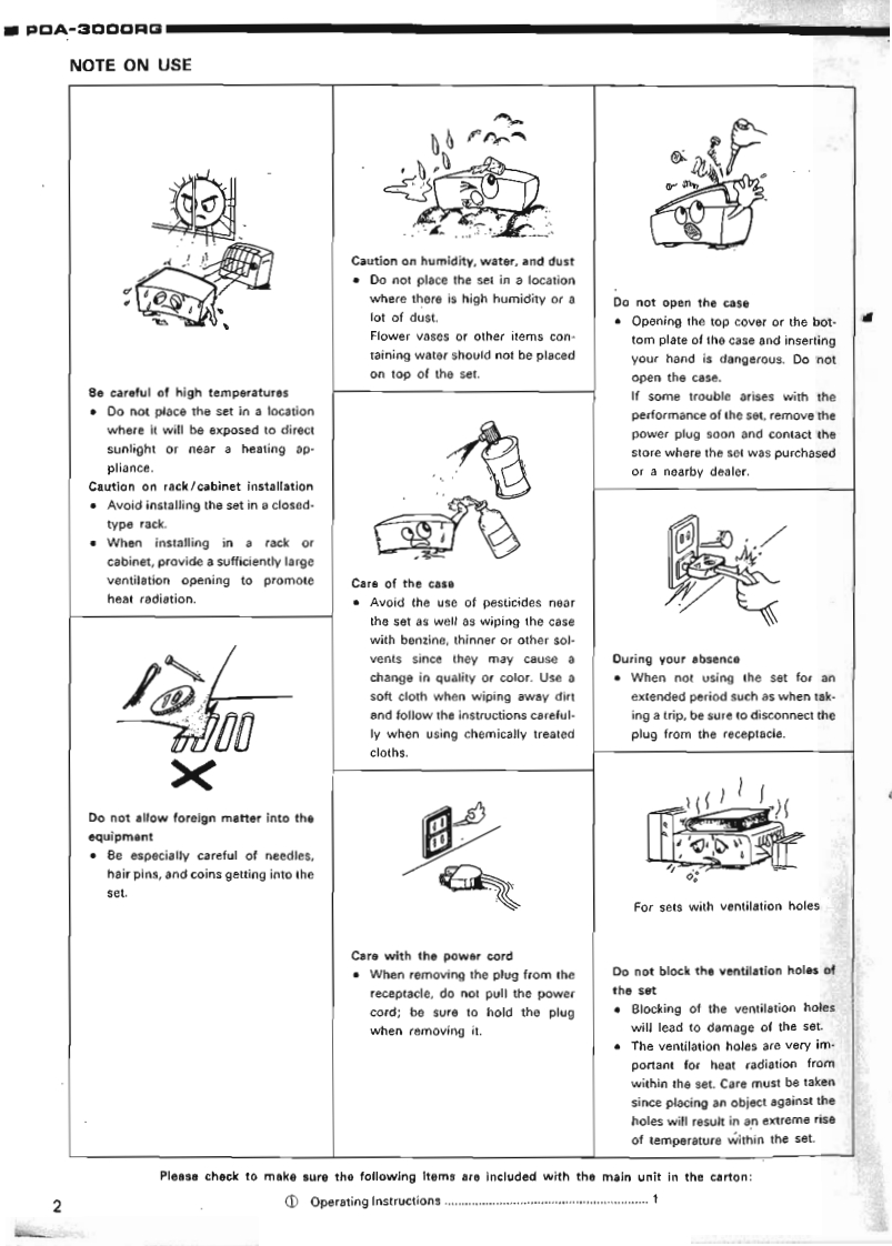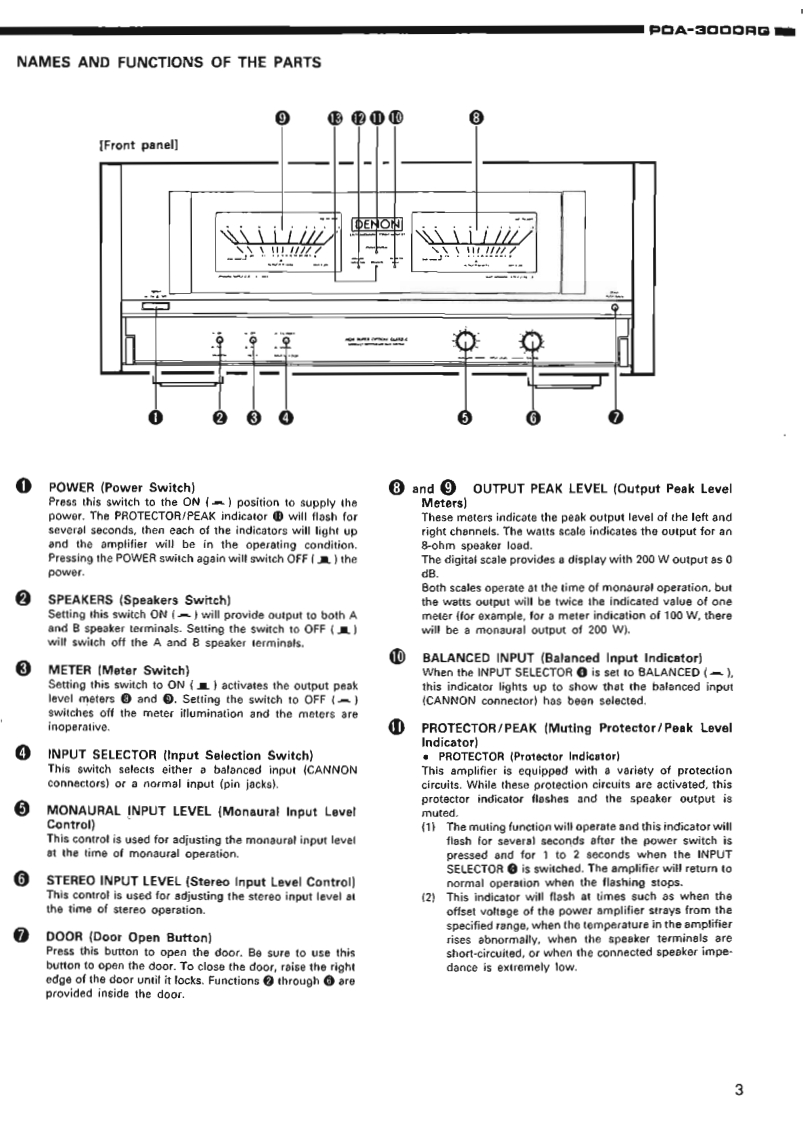 DENONStereo Power AmplifierSERVICEMANUALMODEL POA-3OOORGSTEREO POWER AMPLIFIERNOTE:This Service Manual is propared based on Asia Version.CONTENTSOPERATING INSTRUCTIONS.2-10REMOVALOF EACHSECTON...............................................11METHOD OF ADJUSTMENTS ..............................................12SEMIC0 NDUCTORS.…NOTE FOR PARTS LIST ...........…14PRINTED WIRING BOARD PARTS LIST.14-16PRINTED WIRING BOARD PATTERNSKU-9191 POWER AMP UNIT17KU-9192 INPUTUNIT ................................................8Ku-g193CONTROL UNIT...............................................9PAATS LIST OF EXPLODED VIEW............................................20EXPLODED VIEW OF CHASSIS AND CABINET .................................WIRING DIAGRAM ........................................................2SCHEMATIC DIAGRAM.232NIPPON COLUMBIA CO.LTD.