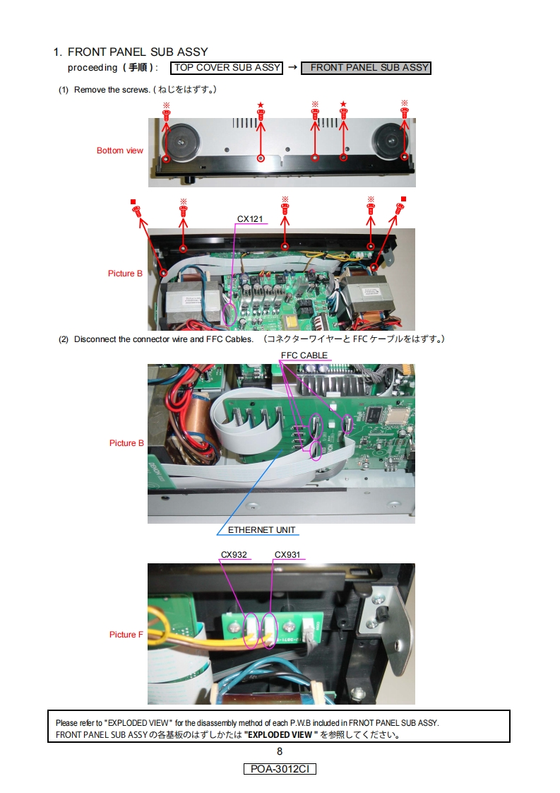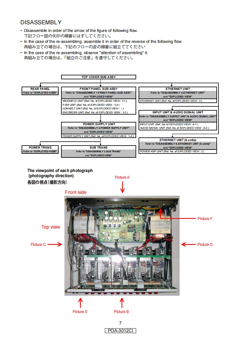 DENONVer.1SERVICE MANUALMODELJPE3E2EKE2AE1CE1KEUTPOA-3012C1STEREO POWER AMPLIFIER注意圹一上又在方乙春前(、乙)片一上又又二1了儿在必寸方蔬〈龙过。本機志、火災、感電、付州存忙对寸石安全性在確保寸石左忆、志丰龙ま存配慮卷訪乙存一乙方)、未左法的忙体「電氨用品安全法」忙屯上老、所定)許可在得(製造过九乙求寸。徙(圹一上又在茄乙春際:、乙九5仞安全性雜持志九石太ラ、乙)片一上又又二1了儿記载志九(小石注意事項在必寸守)〈龙这。For purposes of improvement,specifications and·本機)仕横性能改良)大饮、予告存〈变更寸石乙匕design are subject to change without notice.5莎)李寸。·補修用性能部品)保有期間:、製造打切後8年℃寸。Please use this service manual with referring to the修理)際太、必才取极锐明害卷参照)上、作業卷行一operating instructions without fail.(〈忙达U。Some illustrations using in this service manual are·本文中使用L(石亻与又卜体、脱明)都合上現物slightly different from the actual set.七多少異在局場合杨)ま寸。DENONDenon Brand Company,D&M Holdings Inc.X0364 V.01 DE/CDM 0803