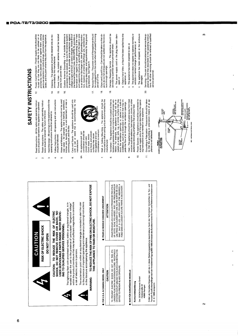 DENONHi-Fi ComponentSERVICE MANUALM8B量8:铝MODELSTEREO POWER AMPLIFIERP0A-3200POA-T2POA-T3-TABLE OF CONTENTS-OPERATING INSTRUCTIONS(POA-T2/T3)........................................................2-5OPERATING INSTRUCTIONS(POA-3200)6-11DJSASSEMBLY............................................................................12-BLOCK DIAGRAM16METHODOF ADJUSTMENT.....................................................................SEMICONDUCTORS...........................................................................18NOTE FORPARTSLIST.........................................................................19PARTS LIST OF PRINTED WIRING BOARD20,21PARTS LIST OF EXPLODED VIEW(POA-T3)........................................................EXP0 DED VIEW (P0A-T3),..,,,,,,,,.,,,2PARTS LIST OF EXPLODED VIEW (POA-T2/3200)...................................................ExPLoDED VIEW (POA-T2/3200)........................................................子PRINTED WIRING BOARD ....................................................................26.27WIRINGDIAGRAM..............................................................................SCHEMATIC DIAGRAM .....2NIPPON COLUMBIA CO..LTD.