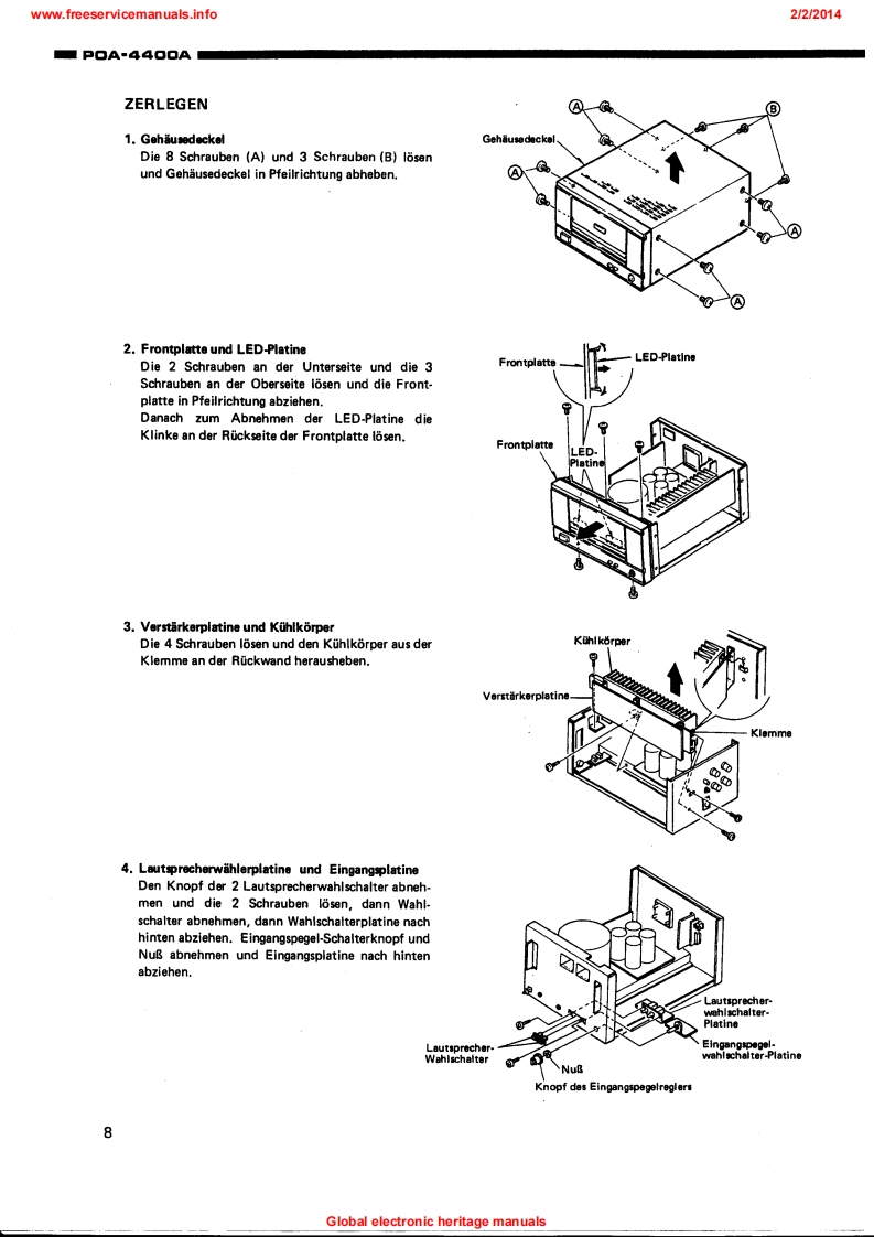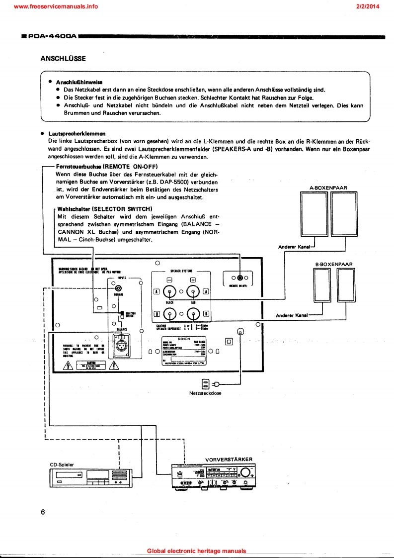 wrrvicemanuals.info2/2/2014DENONHi-Fi-Mono-VerstarkerWARTUNGSANLEITUNGTYPP▣A-44▣▣AMONO-VERSTARKERDiese Wartungsanleitung basiert auf der EUROPA-Ausfuhrung,SchwarzINHALTBEDIENUNGSANLEITUNG.27ZERLEGENEINSTELLUNGEN.....STORUNGSSUCHE10BLOCKSCHALTBILDHALBLEITER12,13TEILELISTE DE PLATINE14,15PLATINEN,,,,,,,,,,,,,,,16,17LEISTUNGS BAUGRUPPE KU9152LEISTUNGS BAUGRUPPE KU9155ANSCHLUSSPLAN,,··..,,,··,,,·,。,·,·,1SCHALTPLAN.EXPLOSIONZEICHNUNG VON CHASSIS UND GEHAUSE UND TELELISTE ................2TEILELISTE,ANHANG,,,,,,··NIPPON COLUMBIA CO.,LTD.Global electronic heritage manuals