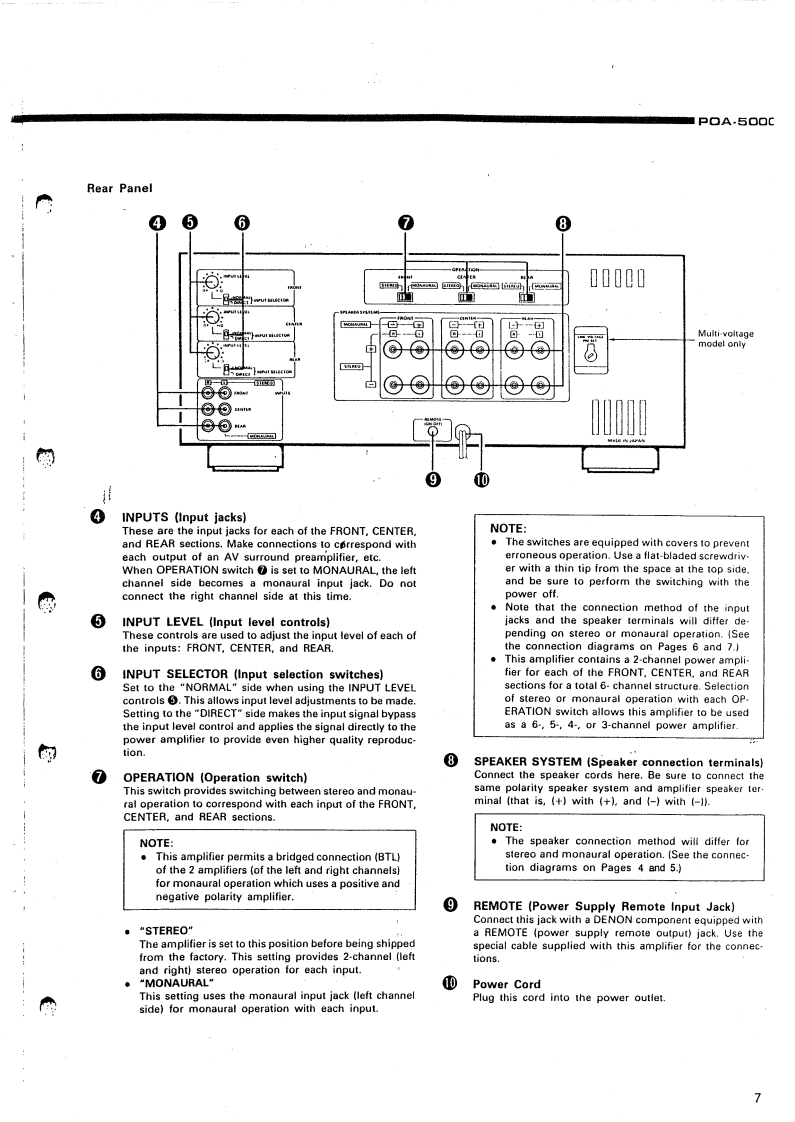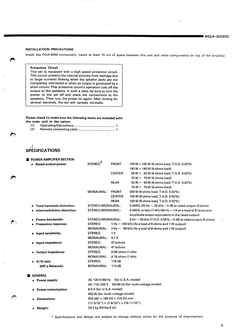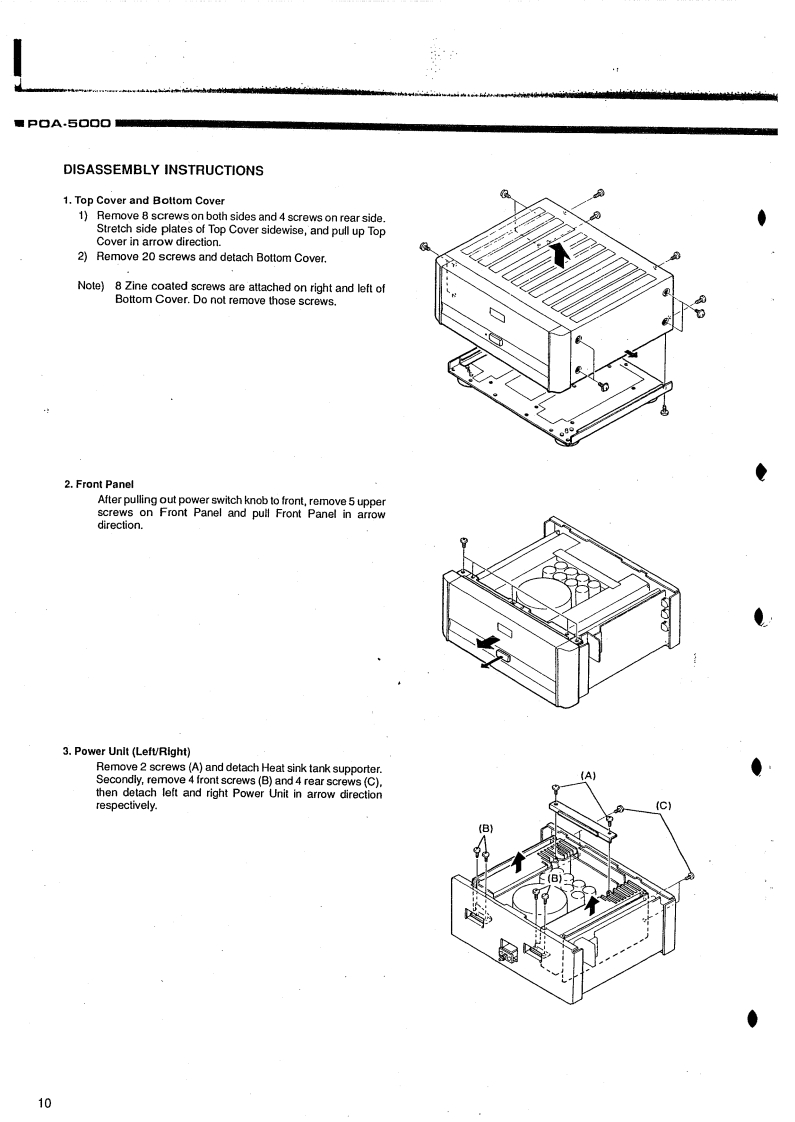DENONHi-Fi Component.SERVICE MANUALMODEL POA-5000STEREO POWER AMPLIFIER-TABLE OF CONTENTS-OPERATING INSTRUCTIONSBLOCK LEVEL DIAGRAM.2-8DISASSEMBLY INSTRUCTIONS910-11ADJUSTING AND CHECKINGSEMICONDUCTORS......:.......12-133P.W.BOARD OF 1U-2236 POWER AMPLIFIER UNITP.W.BOARD OF 1U-2235 INPUT/CONTROL UNIT141P.W.BOARD OF 1U-2237 POWER SUPPLY UNIT16PARTS LIST OF 1U-2236 POWER AMPLIFIER UNITPARTS LIST OF 1U-2235 INPUT CONTROL UNIT17-18PARTS LIST OF 1U-2237 POWER SUPPLY UNIT…18-19PARTS LIST OF EXPLODED VIEW.....PARTS LISTOF PACKING&ACCESSORIES....................................0EXPLODED VIEWWIRING DIAGRAM.·00SCHEMATIC DIAGRAM2223-NIPPON COLUMBIA CO..LTD.