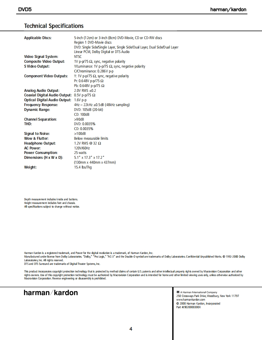 HarmanKardon-DVD5-cd-维修说明书手册含电器原理图