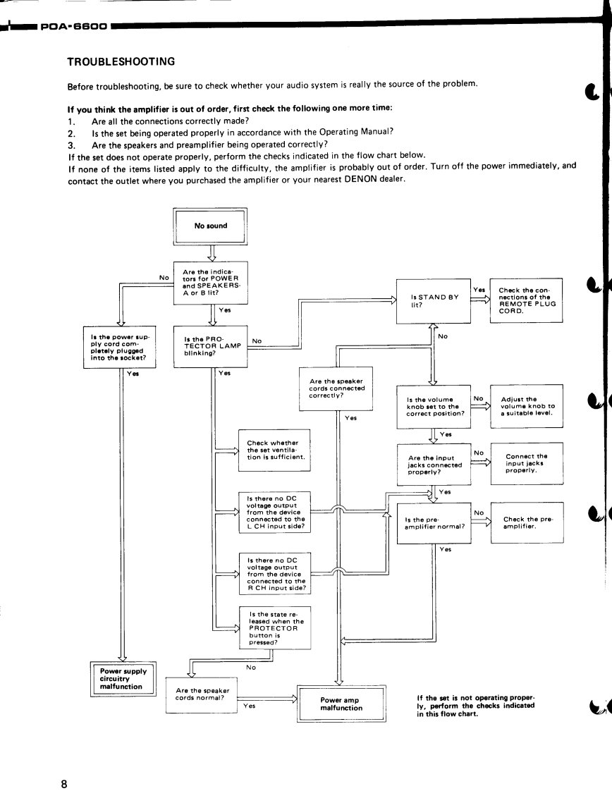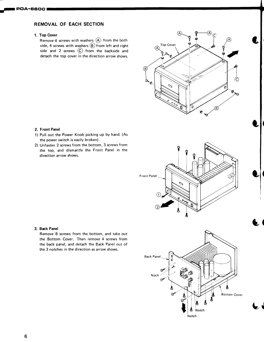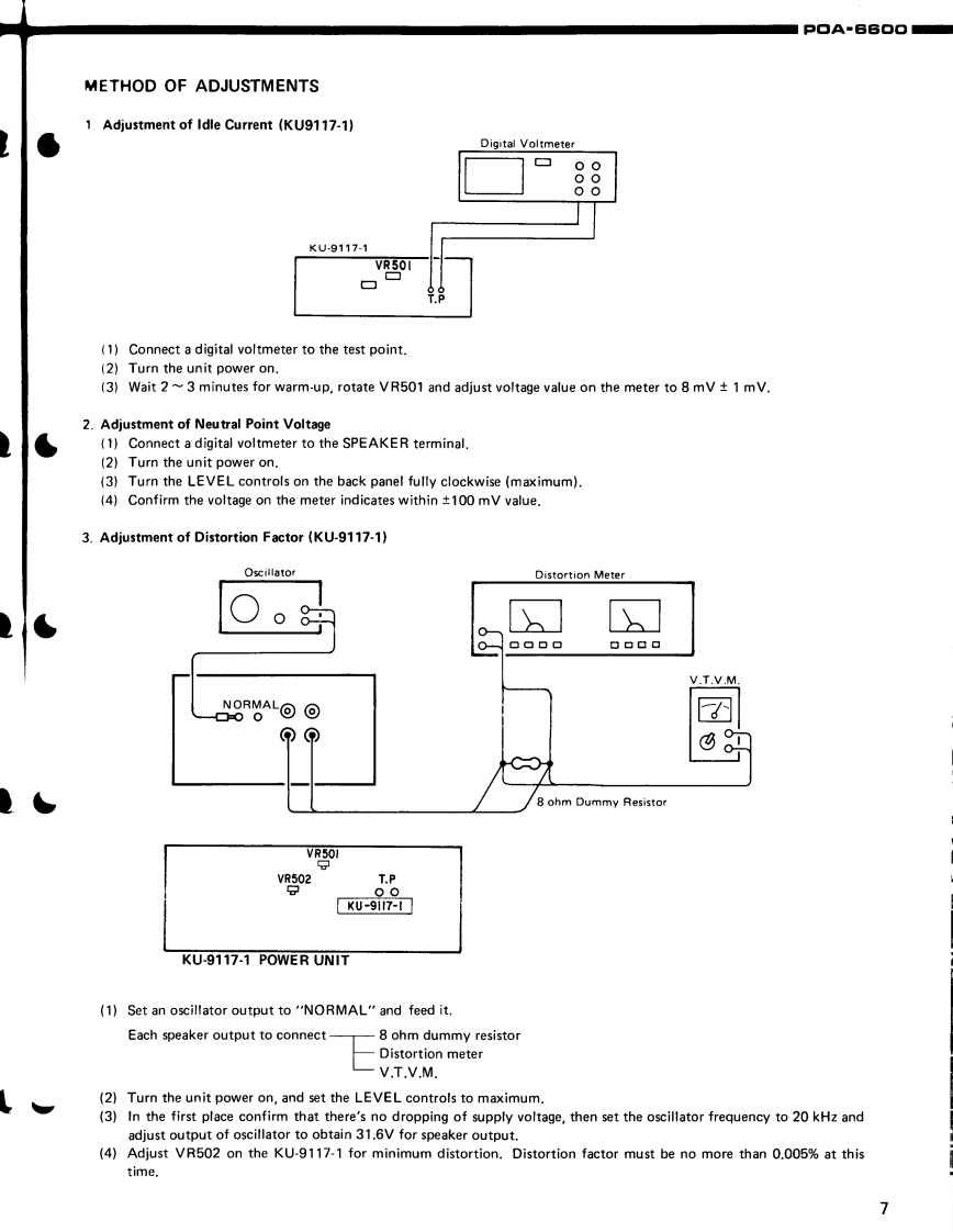 DENONHi-Fi Monaural Power AmplifierSERVICEMANUALMODEL POA-6600SOLID STATEMONAURAL POWER AMPLIFIERCONTENTSSPECIFICATIONSNAME OF EACH PART.............,.,...,,,,,,,,·,··,··,···············3CONNECTIONS.......。,。。。。。。,。,。1,,,+1t444.44104。,,;,:,t,+,。。45REMOVAL OF EACH SECTION.,··6METHOD OF ADJUSTMENTS,,···…··TROUBLESHO0TING.,,,·BL0 CK DIAGRAM,·…9SEMICONDUCTORS.,,,···9PRINTED WIRING BOARDKU9117 POWER UNIT.,.,,····10KU9118P.S.UNIT,.,...11PRINTED WIRING BOARD PARTS LIST........................................12~15NIRING DIAGRAM.·16SCHEMATIC DIAGRAM17EXPLODED VIEW OF CHASSIS AND CABINET PARTS LIST18ADDENDUM LIST,.,,,,,,···19NIPPON COLUMBIA CO.,LTD.