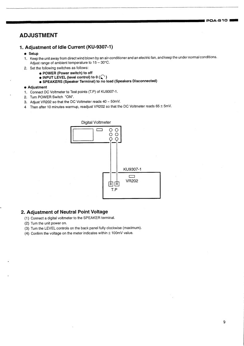 DENONHi-Fi ComponentSERVICE MANUALMODEL POA-S1▣SOLID STATEMONAURAL POWER AMPLIFIER-TABLE OF CONTENTS-OPERATING INSTRUCTIONS....................................................2-6BLOCK DIAGRAMDISASSEMBLY INSTRUCT1ONS..,..,..,.............,.,,,,,,,,,,,,..··,6ADJUSTMMENT ................................................................................SEMICONDUCTORS....10,11P.W.BOARD OF KU-9307 POWER AMPLIFIER UNIT ..12P.W.BOARD OF KU-9308 POWER SUPPLY CONTROL UNIT...................................PARTS LIST OF KU-9307 POWER AMPLIFIER UNIT ......14-15PARTS LISTOF KU-9308 POWER SUPPLY&CONTAOL UNIT.........................................PARTS LIST OF EXPLODED VIEW.....,,.,,,,,,,,,..,6PARTSLISTOF PACKING&ACCESSORIES........................................................EXPLODED VIEW ............................................................................7WIRING DIAGRAM......................................................................SCHEMATICDIAGRAM .................................................................。NIPPON COLUMBIA CO.,LTD.