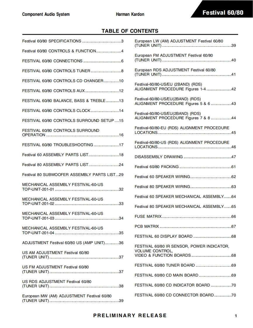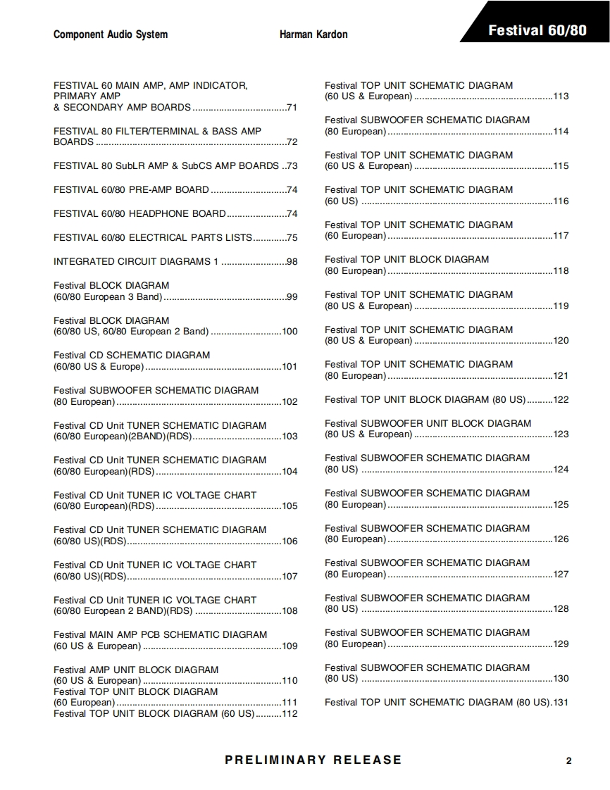 HarmanKardon-Festival60-rec-维修说明书手册含电器原理图找手册网29天前发布关注私信5.60MB132页022HarmanKardon-Festival60-rec-维修说明书手册含电器原理图此内容为付费资源,请付费后查看¥19¥21黄金会员免费钻石会员免费登录购买付费资源 第1页 / 共132页 第2页 / 共132页 第3页 / 共132页 第4页 / 共132页 第5页 / 共132页 第6页 / 共132页 第7页 / 共132页 第8页 / 共132页 第9页 / 共132页 第10页 / 共132页 试读已结束,还剩122页,您可下载完整版后进行离线阅读 THE END哈曼卡顿/飞利浦 文本预览 harman/kardonFESTIVAL 60/80Component Audio SystemTECHNICAL MANUALPRELIMINARYkA☒8889Harman Consumer Group250 Crossways Park DriveWoodbury,N.Y.117971-800422-8026 in the USAH A Harman Intemational CompanyRev A 9/00-PRELIMINARY RELEASE 查看更多 收起部分 喜欢就支持一下吧收藏