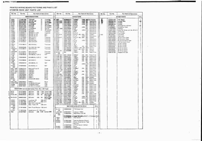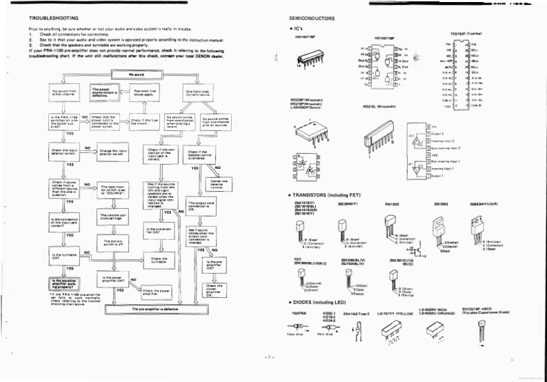 DENONHi-Fi Integrated AmplifierSERVICE MANUALMODEL PRA-MM▣▣FOR EUROPEAN,U.KAND OTHER MODELSINTEGRATED AMPLIFIERTABLE OF CONTENTSSPECIFICATIONS2NAMES AND FUNCTIONS OF PARTS...................................................CONNECTIONS...4BLOCK DIAGRAMMETHOD OF ADJUSTMENTS..5REMOVAL OF EACH SECTION..............6TROUBLESHOOTINGSEMICONDUCTORS.7PRINTED WIRING BOARD PATTERNS AND PARTS LISTETC9072BMA1 N UNIT,,,,,…·8,9WIRING DIAGRAM10SCHEMATIC DIAGRAM11EXPLODED VIEW OF CHASSIS AND CABINET PARTS LIST............................12NIPPON COLUMBIA CO..LTD.