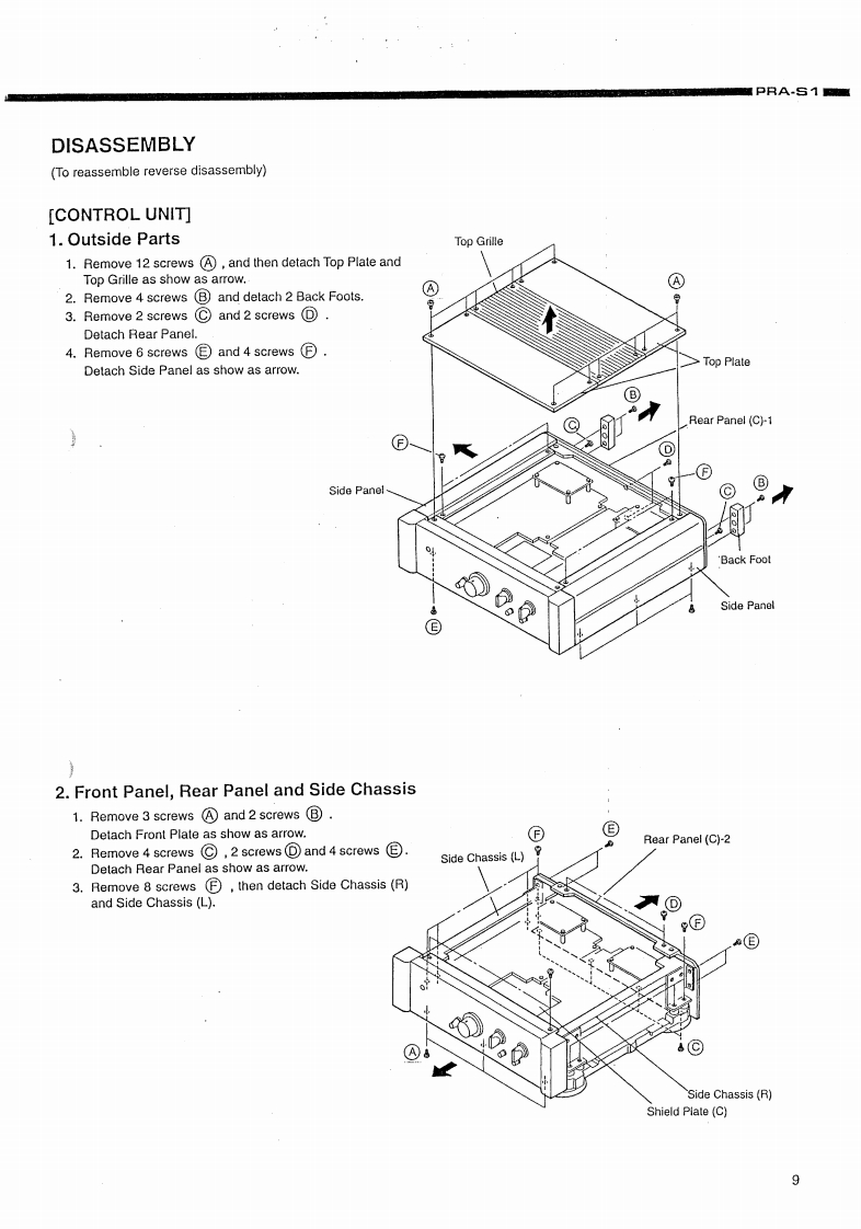 DENONHi-Fi Pre AmplifierSERVICE MANUALMODEL PRA-S1PRE AMPLIFIERCONTROL UNITPOWER UNITCONTENTSOPERATING INSTRUCTIONS,,,,2-8(INCLUDED BLOCK DIAGRAM,LEVEL DIAGRAM AND SPECIFICATIONS)DISASSEMBLY ...........................................................................9-12ADJUSTMENT.............................................................................13.14SEMICONDUCTORS..............................................15.16PRINTED WIRING BOARD…17-22PARTS LIST OF PRINTED WIRING BOARD....................................................23-34PARTS LIST OF PACKING&ACCESSORIES.......................................................3PARTS LIST OF EXPLODED VIEW (CONTROL UNIT)6EXPLODED VIEW(CONTROL UNIT)..…37EXPLODED VIEW (POWERUNI)................................................................PARTS LIST OF EXPLODED VIEW (POWER UNIT)................................................39CONNECTOR PIN FUNCTION (CONTROL UNIT):...:..............................................40WIRING DIAGRAM(CONTROLUNIT).............................................................41WIRING DIAGRAM (POWER UNID ...............................................................,42CONNECTOR PIN FUNCTION (POWER UNIT)..........42SCHEMATIC DIAGRAM ...................................................................43-46NIPPON COLUMBIA CO..LTD.