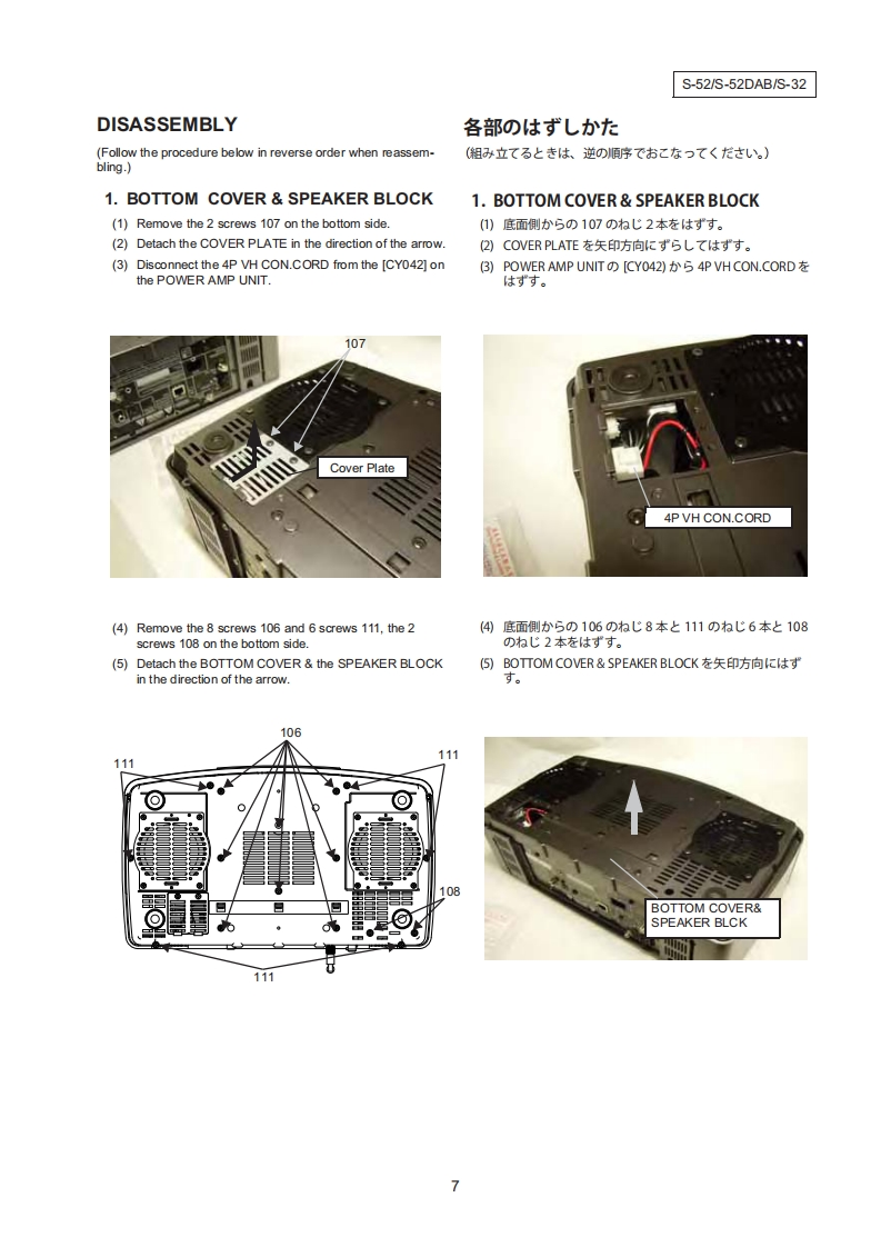 DENONVer.4Please refer to theMODIRICATION NOTICE.SERVICE MANUALMODELJPE3E2EKE2AE1CE1KEUTS-52S-52DABWIRELESS NETWORK CD MUSIC SYSTEMMODELJPE3E2EKE2AE1CE2KEUTS-32WIRELESS NETWORK MUSIC SYSTEM注意廿一匕又在方乙春前、乙)片一比又又二1了儿左必寸书流〈龙。本機:、火災、感電、付州春优封寸石安全性左確保寸石左协忆、士ま式ま在配虚左书乙在一T方)、丰龙法的休「電氨用品安全法」化花上走、所定)許可在得7製造志九(书)丰寸。徙?7竹一匕入春右乙在際休、乙九5)安全性雑持达九石女、乙)圹一上又マ二工了記裁志九(石注意事項在必式书守)人龙达。For purposes of improvement,specifications and·本機仕横性能改良)左饮、予告在〈变更寸石乙上design are subject to change without notice.扩莎)末寸。·補修用性能部品)保有期間志、製造打切後8年飞寸。.Please use this service manual with referring to the·修理)際休、必寸取极說明害左参照)上、作業左行?operating instructions without fail.(《龙这。Some illustrations using in this service manual are·本文中忙使用L(石亻ラ又卜体、說明)都合上现物slightly different from the actual set.上多少異春石場合扩)未寸。DENONDenon Brand Company,D&M Holdings Inc.X0360V.04DE/CDM0712