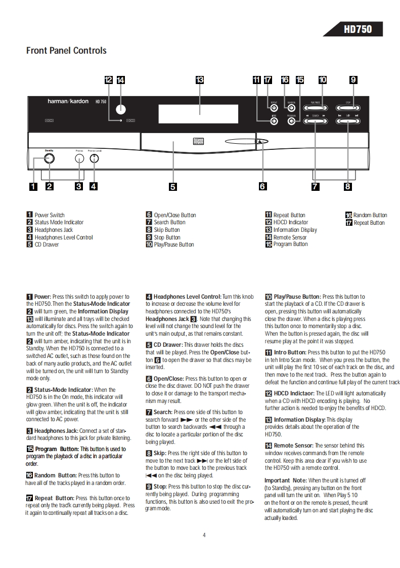 The Harman KardonModel HD750COMPACT DISC PLAYERTechnical Manualharman/kardonE网☑■CONTENTS■1.LASER BEAM SAFETY PRECAUTIONS ..........29.BLOCK DIAGRAM.542.CONTROL AND FUNCTIONS....410.SCHEMATIC DIAGRAMS.........553.SPECIFICATONS AND FEATURES11.PCB LAYOUT594AUDIO CHARACTERISTICS TEST PROCEDURE12.EXPLODED VIEW.6213.PACKING DRAWING....635.CIRCUIT DESCRIPTION .......116.CRITICAL I.C.SPECIFICATION.....157.PART LST418.TROUBLE SHOOTING GUIDE48Harman/kardon continually strives to improve its products.The HD750 Compact Disc Player design andspecifications are subject to change and may differ from the published specifications and descriptions,but willalways equal or exceed the original specifications unless otherwise stated.DANGER:Invisible laser radiation when open and interlock failed or defeated.AVOID DIRECT EXPOSURE TO BEAM.harman/kardonParts and Service Office250 Crossways Park Dr.,Woodbury,N.Y.117971112-FL8350 P9603 1200 Printed in Hong Kong