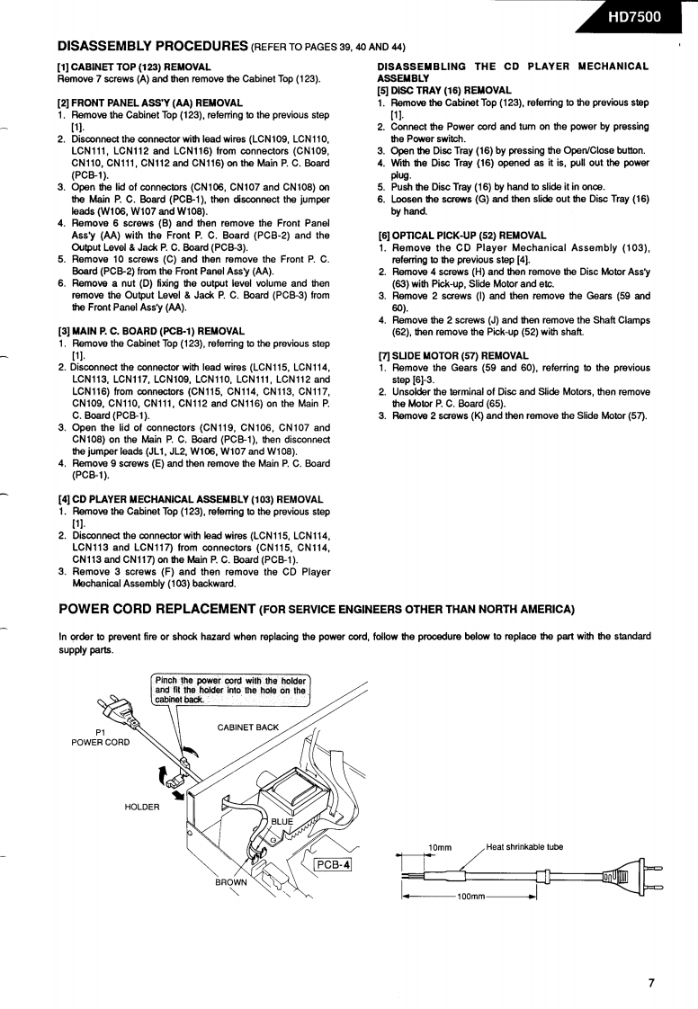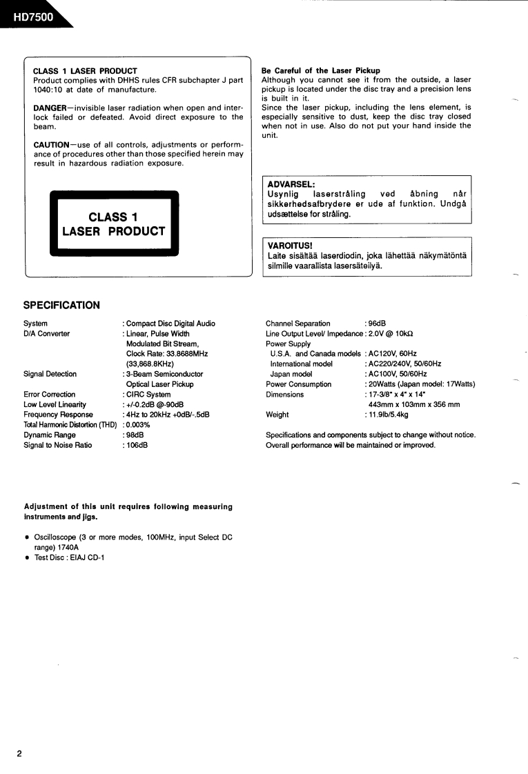 The Harman KardonModel HD7500Manual 153ACOMPACT DISC PLAYERTechnical Manual0:8899京9891249.311号44044▣情作nharman/kardon口白中白白白会白白安当The following marks found in the parts list of this manualidentify the models as follows.North America area modelHD7500North America area model Black versionInternational modelInternational model Black versionD Japan model Black versionAustralia model Black versionharman/kardon240 Crossways Park West,Woodbury,N.Y.117971112-3152153A6 P-118906 1500 Printed in Japan