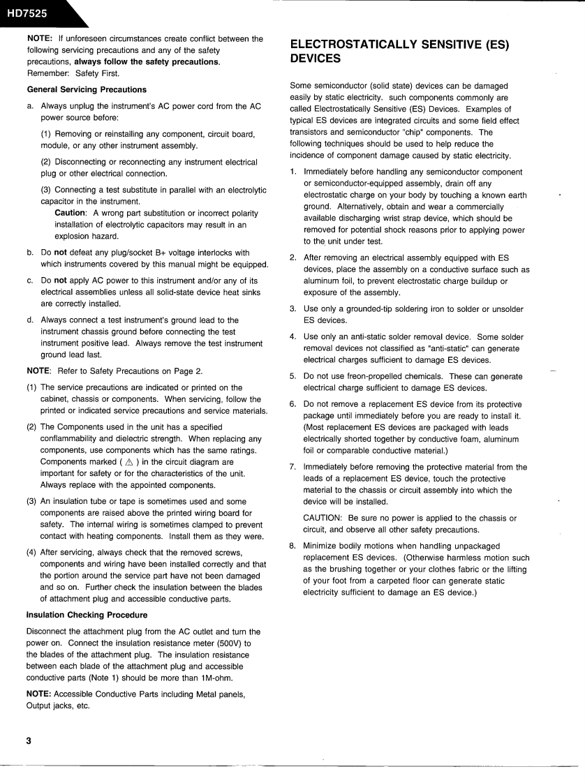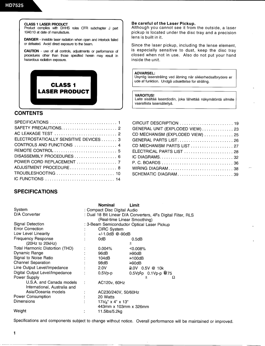 The Harman KardonModel HD7525Manual ACOMPACT DISC PLAYERTechnical Manualharman/kardon HD7525 compe DeP蕊产明阳京日The following marks found in the parts list of this manualidentify the models as follows:感:North America area model Black version©:International model Black versionGeneral ModelGeneral Model Black Versionharman/Kardon240 Crossways Park West,Woodbury,N.Y.117971112-HD7525-A P9307 1200 Printed in USA