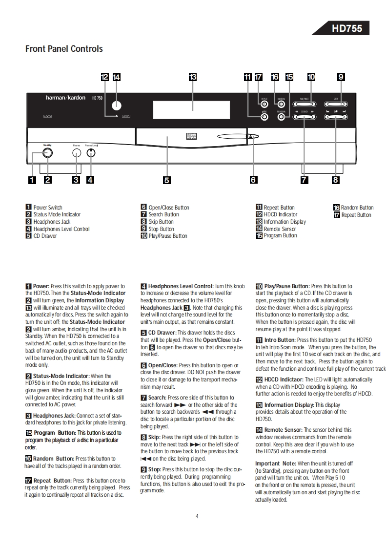 HarmanKardon-HD755-cd-维修说明书手册含电器原理图