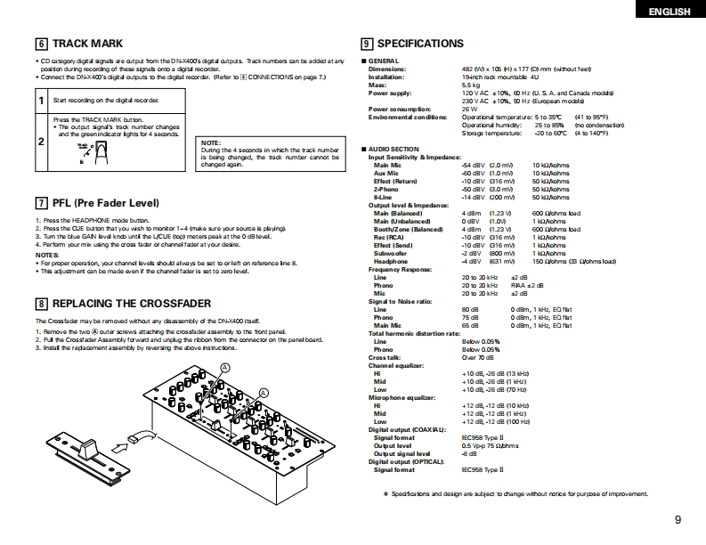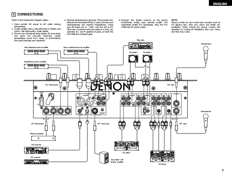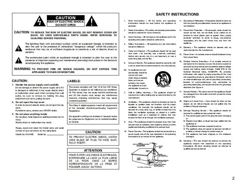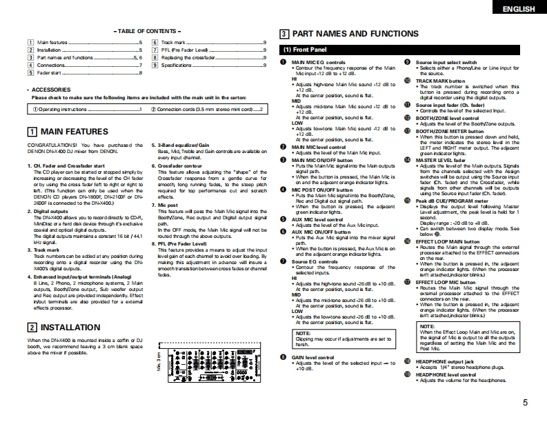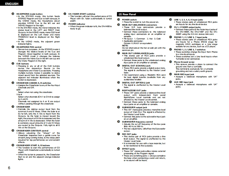 DENONDJ MIXERDN-X400OPERATING INSTRUCTIONSGEBRUIKSAANWIJZINGBEDIENUNGSANLEITUNGBRUKSANVISNINGMODE D'EMPLOIINSTRUCCIONES DE OPERACION宜8898照。唱DENON9-岩的的FOR ENGLISH READ田SPAGE5-%G经9RUR DEUTSCHE LESERSEITE10-s9EPOUR LES LECTEURS FRANCAISPAGE15-阳G经PARA LECTORES DE ESPANOLPAGNA 20-PAGNA 24VOOR NEDERLANDSTAUGE LEZERS PAGNA 25-PAGNA 29FOR SVENSKA LASARES0430-S0%