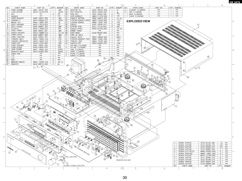harman/kardonhk3370/3470STEREO RECEIVERPRELIMINARYSERVICE MANUALharman/kardon服服贸盟盈盈服服服服服BoooCONTENTSESD WARNING2BLOCK DIAGRAM....28LEAKAGE TESTING..3EXPLODED VIEW HK3370..29BASIC SPECIFICATIONS hk3370..4EXPLODED VIEW HK3470...................30BASIC SPECIFICATIONS hk3470................5DISASSEMBLY PROCEDURES...31FRONT PANEL CONTROLS hk3370............6MECHANICAL PARTS LIST HK3370.......39REAR PANEL CONNECTIONS hk3370........8ELECTRICAL PARTS LIST HK3370........40REMOTE CONTROL FUNCTIONS HK3370..10MECHANICAL PARTS LIST HK3370.......57FRONT PANEL CONTROLS hk3470...........12ELECTRICAL PARTS LIST HK3370........58REAR PANEL CONNECTIONS hk3470........15Ic DESCRIPTIONS.................75REMOTE CONTROL FUNCTIONS HK3470..17PcB DRAWINGS.....86TROUBLESHOOTING GUIDE...................19SCHEMATICS......92ALIGNMENT PROCEDURES.............20WIRING DIAGRAM..103WAVEFORMS...........23PACKAGE..104harman/kardon,Inc.250 Crossways Park Dr.Woodbury,New York 11797