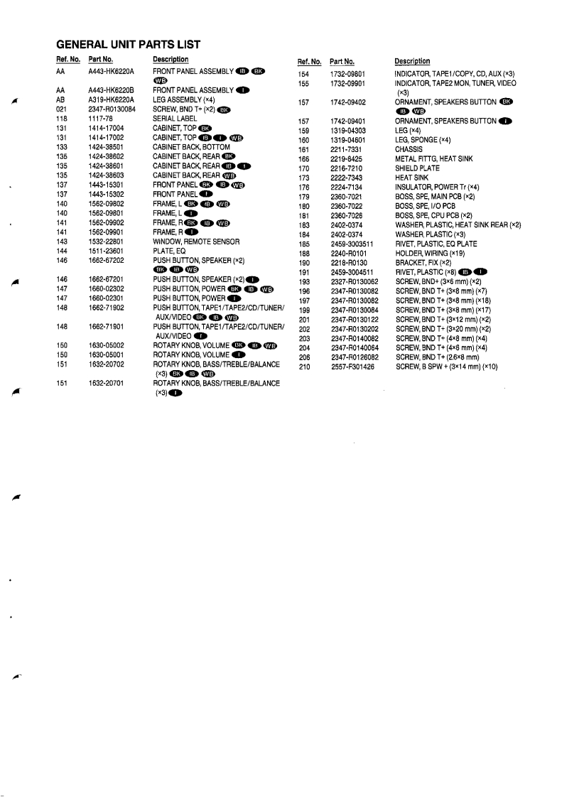 The Harman KardonModel HK620Manual 197AINTEGRATED AMPLIFIERTechnical Manualharman/kardon HThe following marks found in the parts list of this manualidentify the models as follows:North America area model Black versionInternational model Black versionInternational modelAsia/Oceania model Black versionCONTENTSSPECIFICATIONSIC BLOCK DIAGRAM-13DISASSEMBLY PROCEDURES2INFRARED REMOTE CONTROLCONTROLS AND FUNCTIONS3SCHEMATIC DIAGRAM-13ALIGNMENT PROCEDURES3SCHEMATIC DIAGRAM14BLOCK DIAGRAMPH600 PHONO P.C.BOARD OPTIONGENERAL UNIT-4HOW TO INSTALL--17GENERAL UNIT PARTS LIST-5GENERAL UNIT PARTS LIST--17P.C.BOARDS5P.C.BOARD8ELECTRICAL PARTS LIST-WIRING DIAGRAM18WIRING DIAGRAM-12SCHEMATIC DIAGRAM-19IC TERMINAL FUNCTION13ELECTRICAL PARTS LIST--20harman/kardonParts and Service Office80 Crossways Park West,Woodbury,N.Y.117971112-HK620-A K9502 1500 Printed in Japan