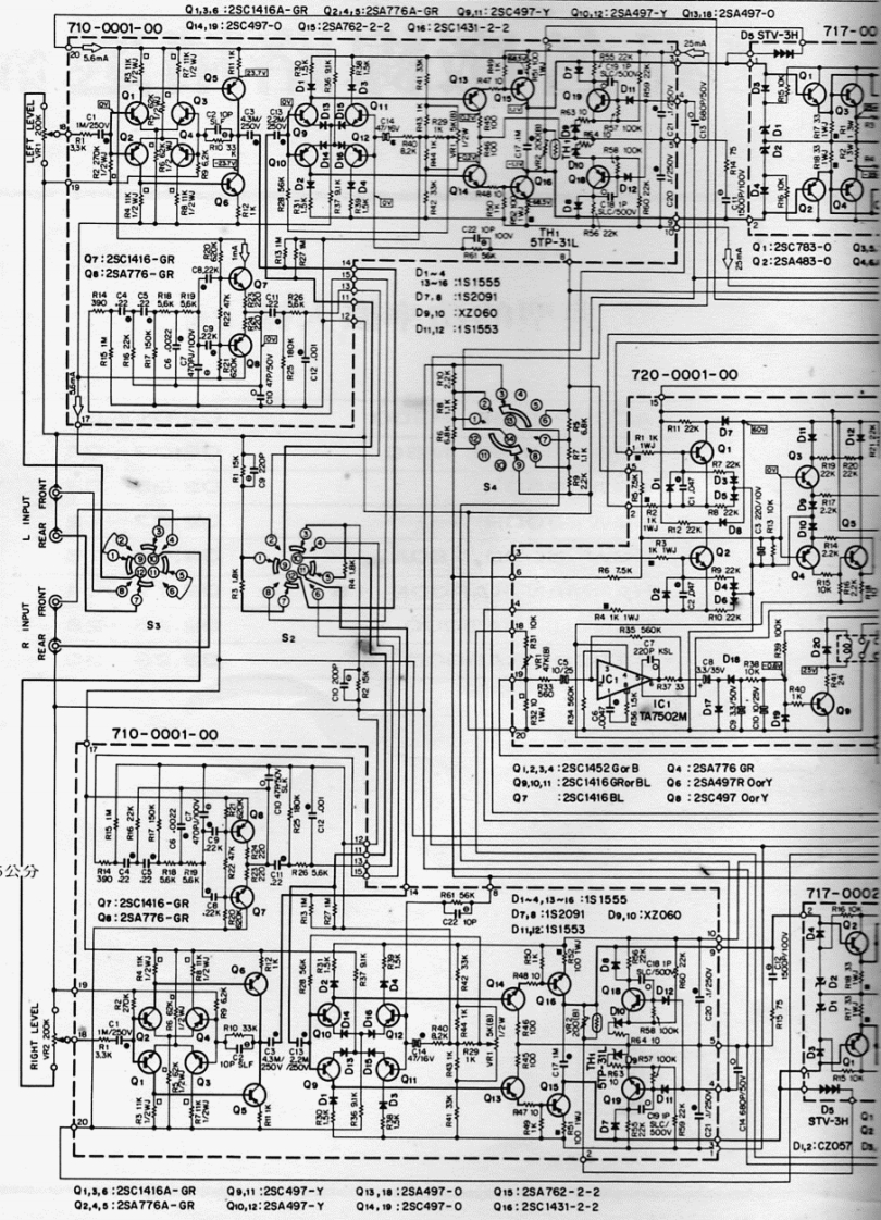 D1,2:CZ057D3,4:1S2091NOTES01-0005,6:1S1555E AMIC CAPACTOR■:OX0 METAL FILM RESISTORSMICA CAPACITORSTANTALUME:CEMENT COATED WIRE WOUND RESISTORSCEMENT COATED METAL PLATE RESISTORS●METALISED GAPACIT+2 310W3金:手LM CAPACITO0MYLAR FILM CAPACITORS口:METAL FILM RESISTOR5FILM Types.ance-20d8RANGE50%EM0TE2REARS5-1:2SC1079 R-K or Y-K82SA679 R-Y or Y-K716-0004-00B时D3D7220oo0RELAY 1D:TDsLEFTRIGHTMM 2XD18:IN6013Q622*88Em220踩171S1555D3-6,1t,12,181S1553+D7,,16:S2091-BL719-0002-00520③D24200000+1Ds2Q10Q11D238西★S5-2R647KD2君州Q467D1:sG-5T(+G20C4Q21000/OWER S-00918¥R166w2SDI3003SV-03D250441612201/500Vm2545y00Q729④●R71212。2D1202:sG-5T(-SLO BLO03Q72333:2SC783-0Q3,5,7:2SC1079R-Ko1RIB 15VOLTAGESELECTOR:2S4483-0Y-K4:1S2091Q45,8:2SA679R-Y0r●Q1 2SC789 OorY06:2SB4350orYD5,6,14:sV-02Q2 2SA489 OorYQ7 2SC1416 GRor BLD7,15:XZ060●03.5:2SC11660orYQs 2SA776 GRor BLD8,16:1S1555117220y240Q4 :2SA661 OorYD1*4:1GZ061D9w12:18Z061