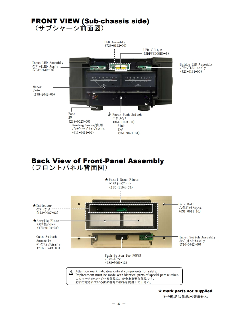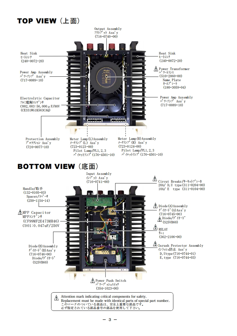 Bi-lingual2 Kccuphase些STARTING WITH SERIAL No.G6Y001Authorized Technical Service Only女一上又資格)态石技術者邡使用L℃下含V、Power Amplifier P-7100P-7100 Schematic Diagram回路☒CAUTION/注意These servicing instructions are for use by qualified personnel only.To reduce the risk of electric shock do not perform any servicingother than that contained in the operating instructions unless you arequalified to do so.Refer all servicing to qualified service personnel.二二仁配截L大步一上人仁阴寸石指示事项休、少一心人仁閃寸石资格花有寸百者D秋茄使用寸百毛D℃寸。感電防止D觀点办与、片一上入资格花有L℃方仕、取极指示事项以外D少一上入住艳对仁行力尔八上)亿L℃下ě。Attention mark indicating critical components for safety.Replacement must be made with identical parts of special part number.二Dマ一夕D∽(石部品法、安全上重要在部品℃才。必于指定达九℃石部品番号D部品花使用L℃下达。