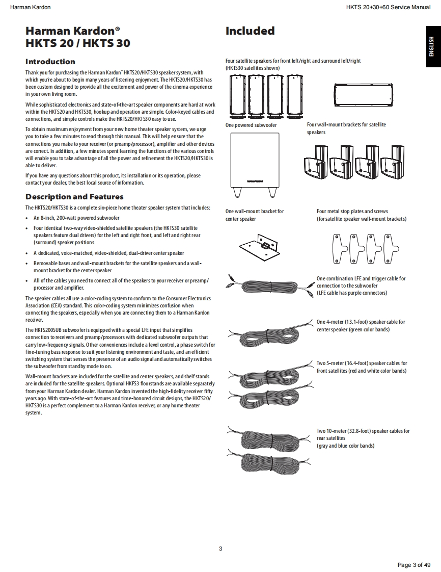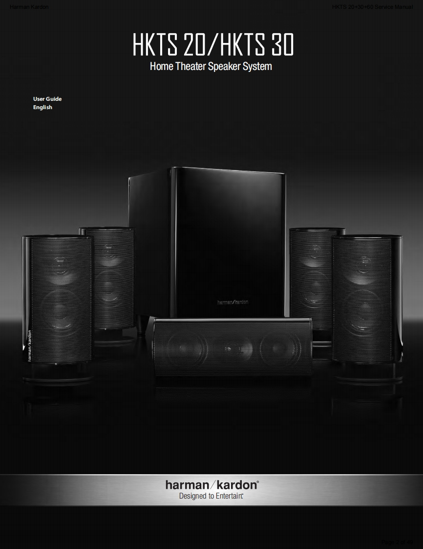 harman/kardonService ManualHKTS20/230,HKTS 30/230 -HKTS 30/WQHKTS60/230.Surround loudspeaker systems with active subwoofer.Earlier versions with HKTS 200 SUB.Later versions with HKTS 210 SUB.CONTENTSHKTS 20+30 USER GUIDE2HKTS 20+30WQ CENTER EXPL VIEW40HKTS 60 with 200 SUB USER GUIDE13HKTS 60 SAT EXPLODED VIEW41HKTS 60 with 210 SUB USER GUIDE24HKTS 200 SUB EXPLODED VIEW/PARTS 42HKTS 20 SAT EXPLODED VIEW/PARTS 36HKTS 200 PARTS LIST43HKTS 30 SAT EXPLODED VIEW/PARTS 37HKTS 200 SCHEMATIC DIAGRAM44HKTS 30WQ SAT EXPLODED VIEW38HKTS 210 SUB EXPLODED VIEW/PARTS 45HKTS 20+30 CENTER EXPLODED VIEW 39HKTS 210 PARTS LIST46HKTS 210 SCHEMATIC DIAGRAMS47Released EU2011Harman Consumer Group,Inc.Rev3,05/20128500 Balboa BoulevardNorthridge,California 91329