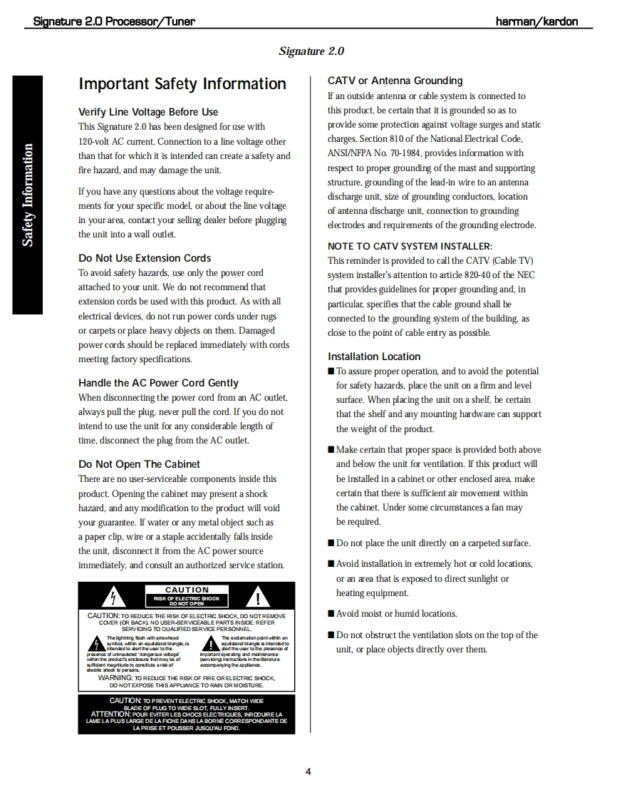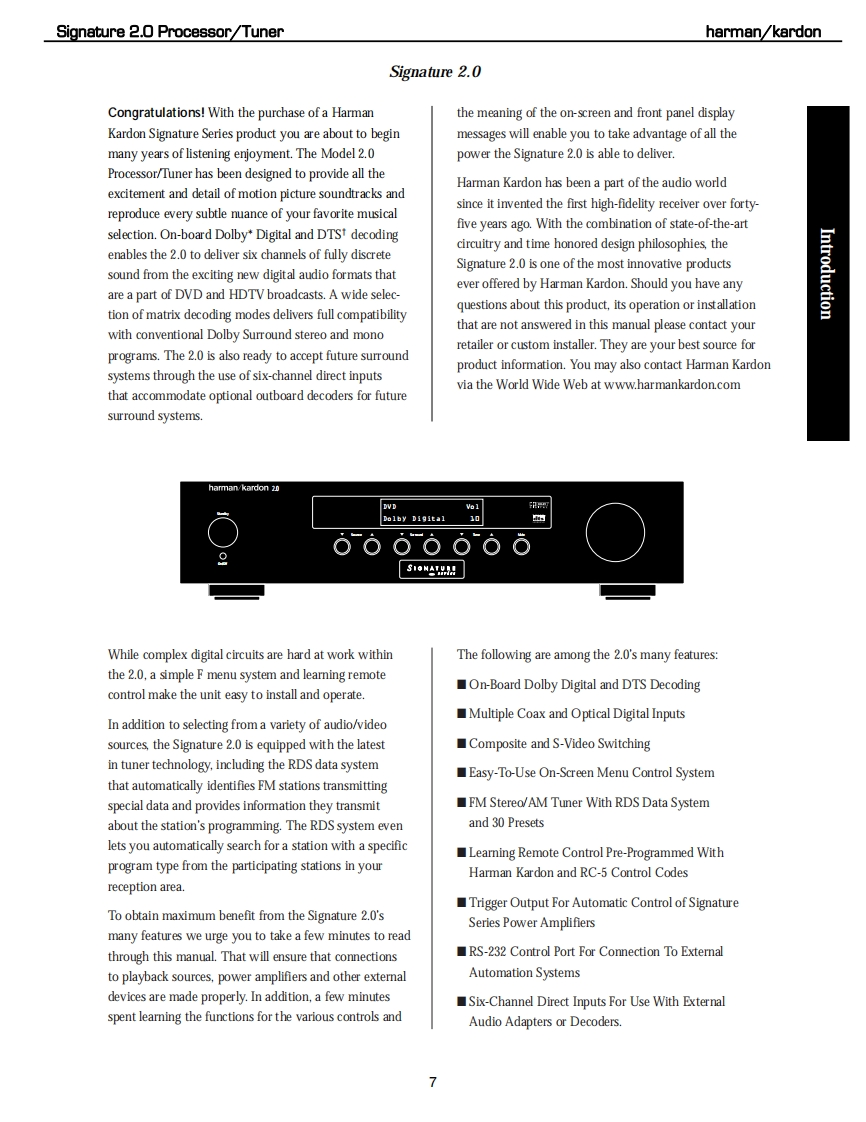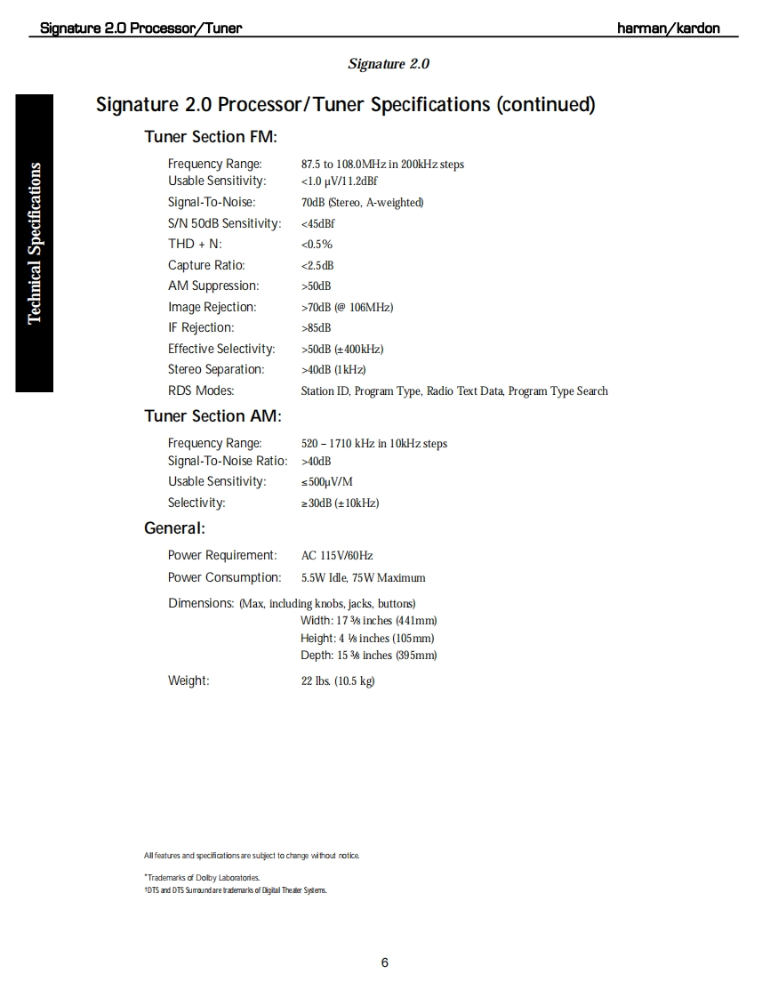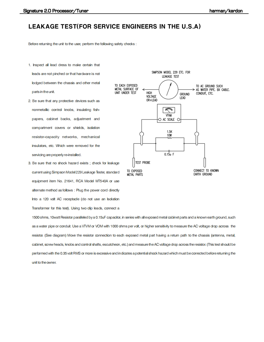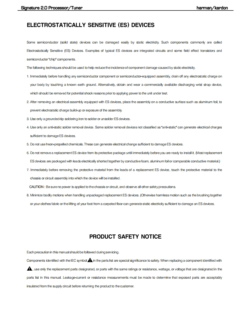 harman/kardonSIGNATURE 2.0PROCESSOR/TUNERSERVICE MANUALharman/kardon 2.0-87.5FwSIGNATORECONTENTSESD,LEAKAGE,SAFETY..................2BULLETIN HK9708........................30BASIC SPECIFICATIONS..................5BU儿LETIN HK9709...31FEATURES...BULLETIN HK9904......32QUICK START GUIDE.......................9BULLETIN HK2000-07..............33FRONT PANEL CONTROLS..........3IC U305 Replacement Instructions...........34REAR PANEL CONNECTIONS.............15Signature 2.0 Upgrade Procedure............35REMOTE CONTROL FUNCTIONS..........17VERSION CHANGES.................36TROUBLESHOOTING GUIDE...........1Auto Detect Mode ON..............40PROCESSOR RESET.........................21SCHEMATICS.............41TROUBLESHOOTING CHART...............23PCB DRAWINGS...........................70BASS/TREBLE CHARTS......................24ELECTRICAL PARTS LIST...................76MECHANICAL ASSEMBLY......5harman/kardon,Inc.250 Crossways Park Dr.Woodbury,New York 11797Rev08/2006