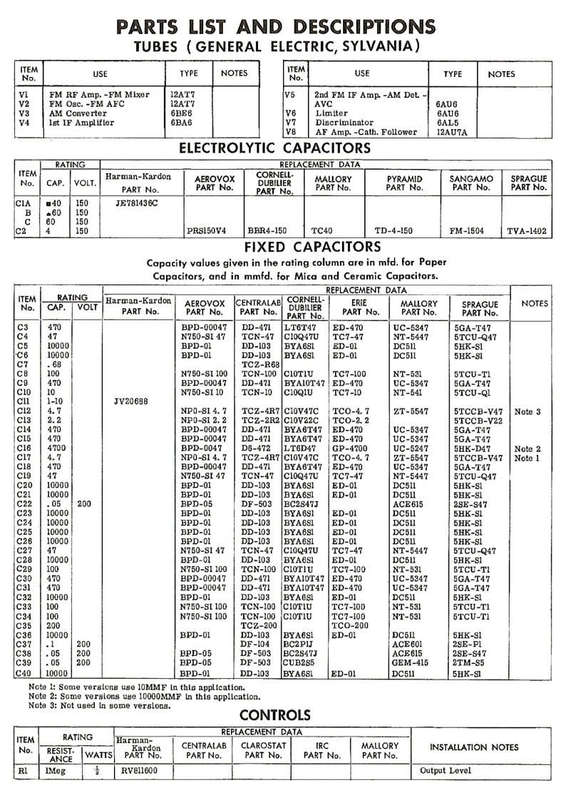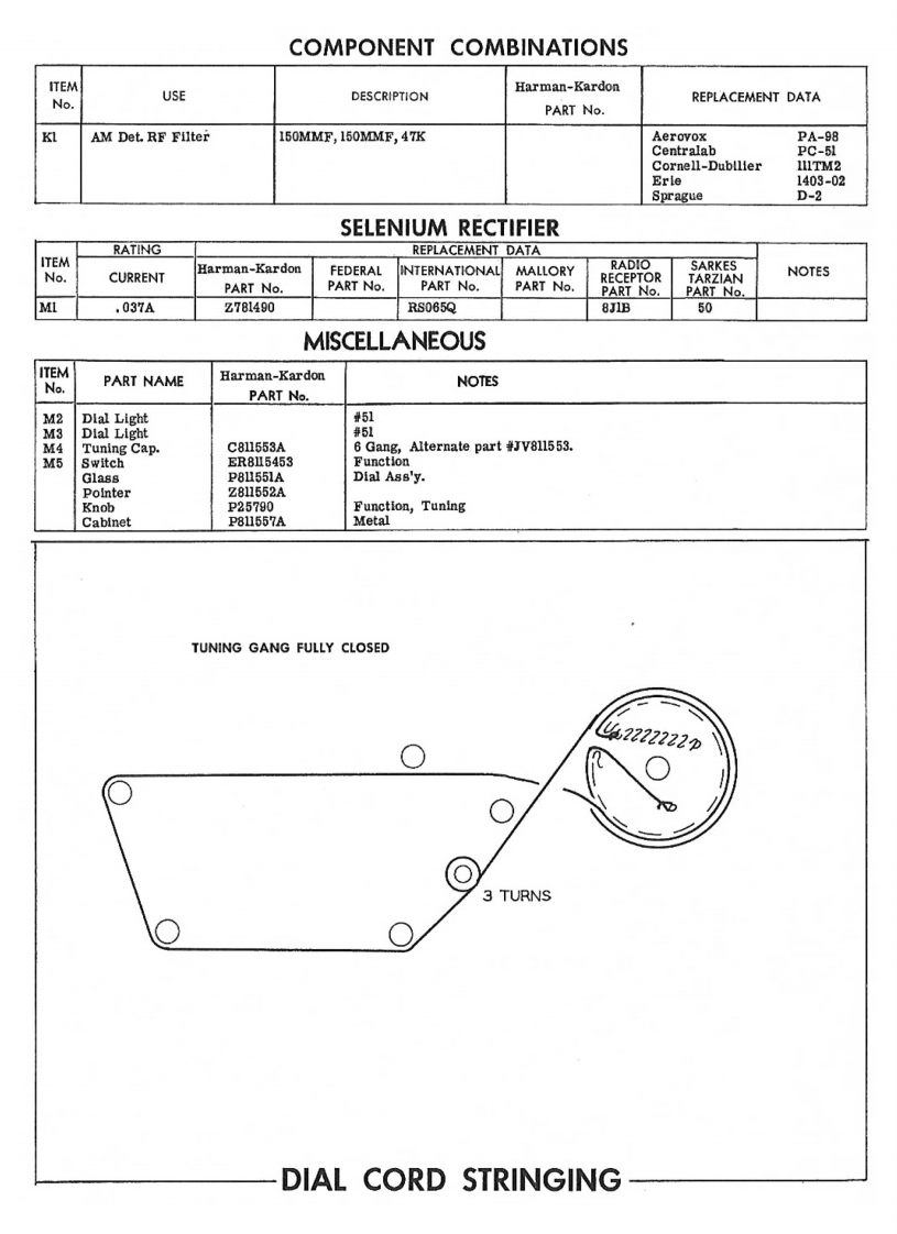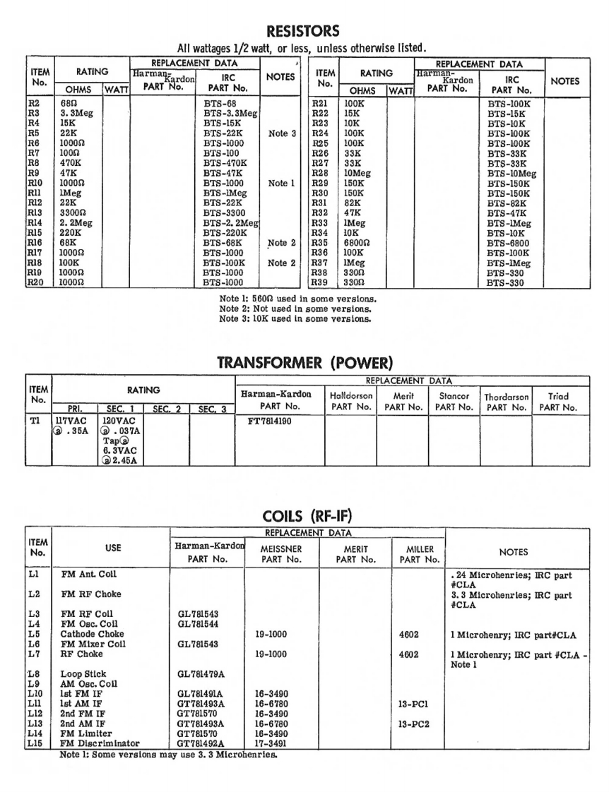 HARMAN-KARDONMODEL T-120TRADE NAMEHarman-Kardon Model T-120MANUFACTURERHarman-Kardon,Inc.,520 Main St.,Westbury,L.L.,N.Y.TYPE SETAC Operated FM-AM TunerTUBES (Eight)Types 12AT7 FM RF Amp.-Mixer,12AT7 FM Osc.-AFC,6BE6 AM Conv.,6BA6 1st IF Amp.6AU6 2nd FM IF Amp.-AM Det-AVC,6AU6 Limiter,6AL5 Disc.,12AU7A AF Amp.-Cath.FoilowerPOWER SUPPLY105-125 Volts AC -60 CyclesRATING 35 Amp.117 Volts AC (30 Watts)TUNING RANGE -BROADCAST 530KC -1650KCFREQ.MOD.88MC 108MC