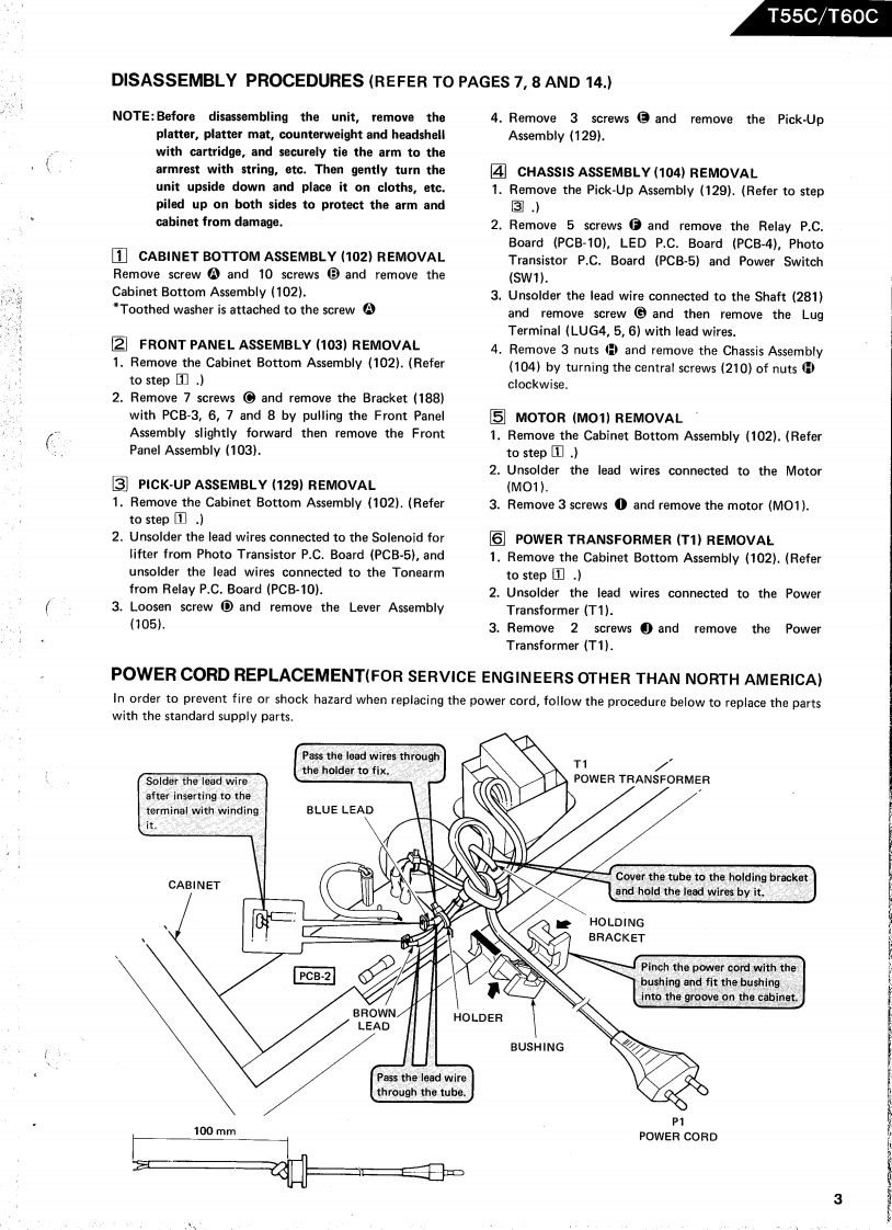 The Harman KardonModels T55C and T60CManual No.75AFLOATING SUSPENSION AUTO-LIFT TURNTABLETechnical Manual(Model T55CModel T60CT55C/T60harman/kardon240 CROSSWAYS PARK WEST,WOODBURY,N.Y.117971112-H1627549 P-08845 165D PRINTED IN JAPAN