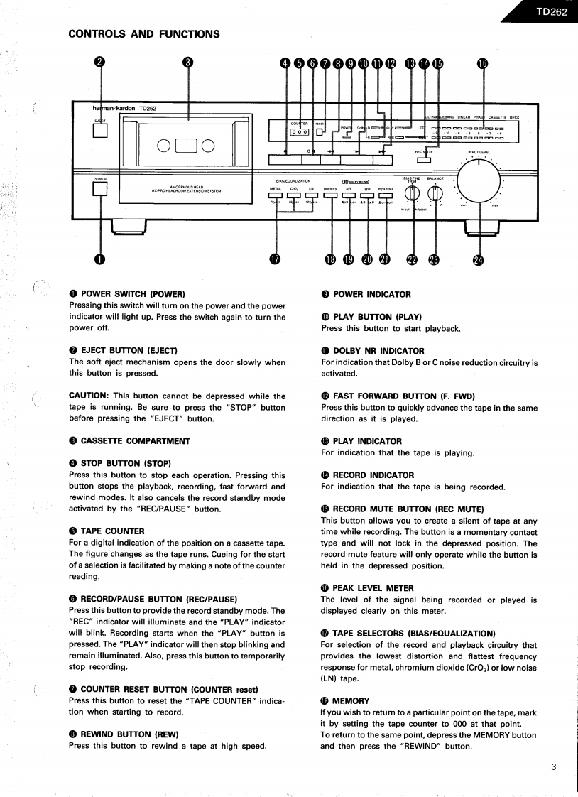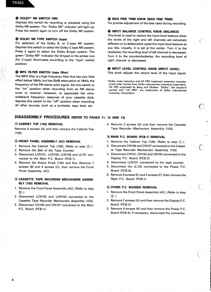 The Harman KardonModel TD262Manual125AULTRAWIDEBAND LINEAR PHASE CASSETTE DECKTechnical Manualharman/kardon T0262白o0兰合白台白白兰①The following mark found in the parts list of this manual identifythe model as follows.General model Black versionTp262harman/kardon240 Crossways Park West,Woodbury,N.Y.117971112-3152125A9 P-078801 1500 Printed in Japan