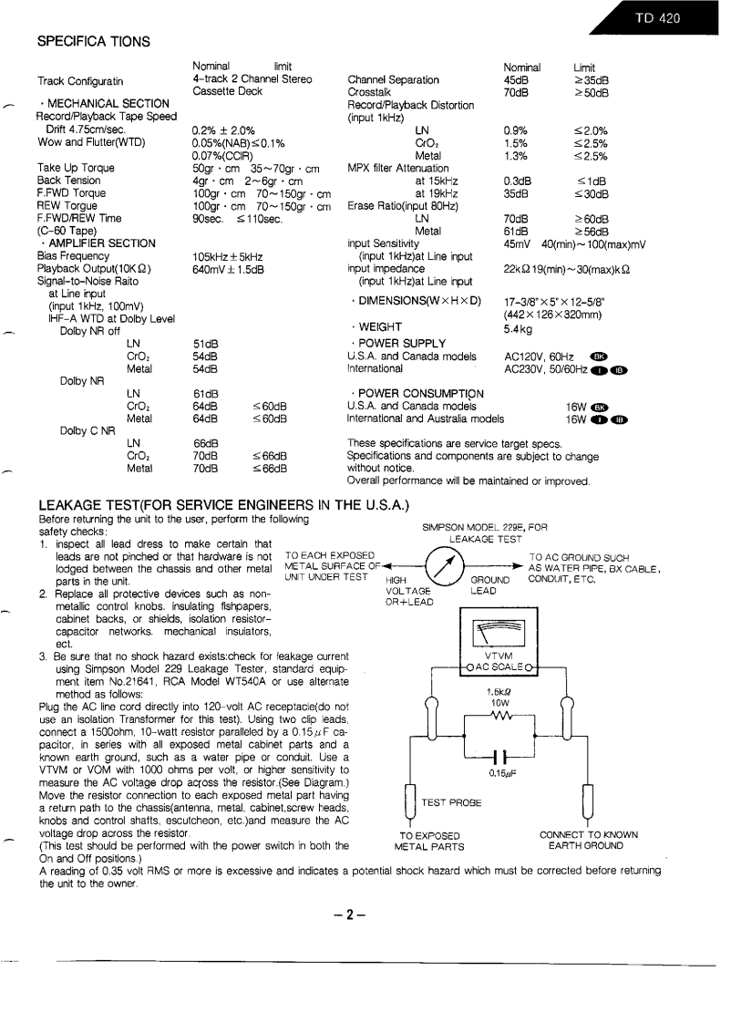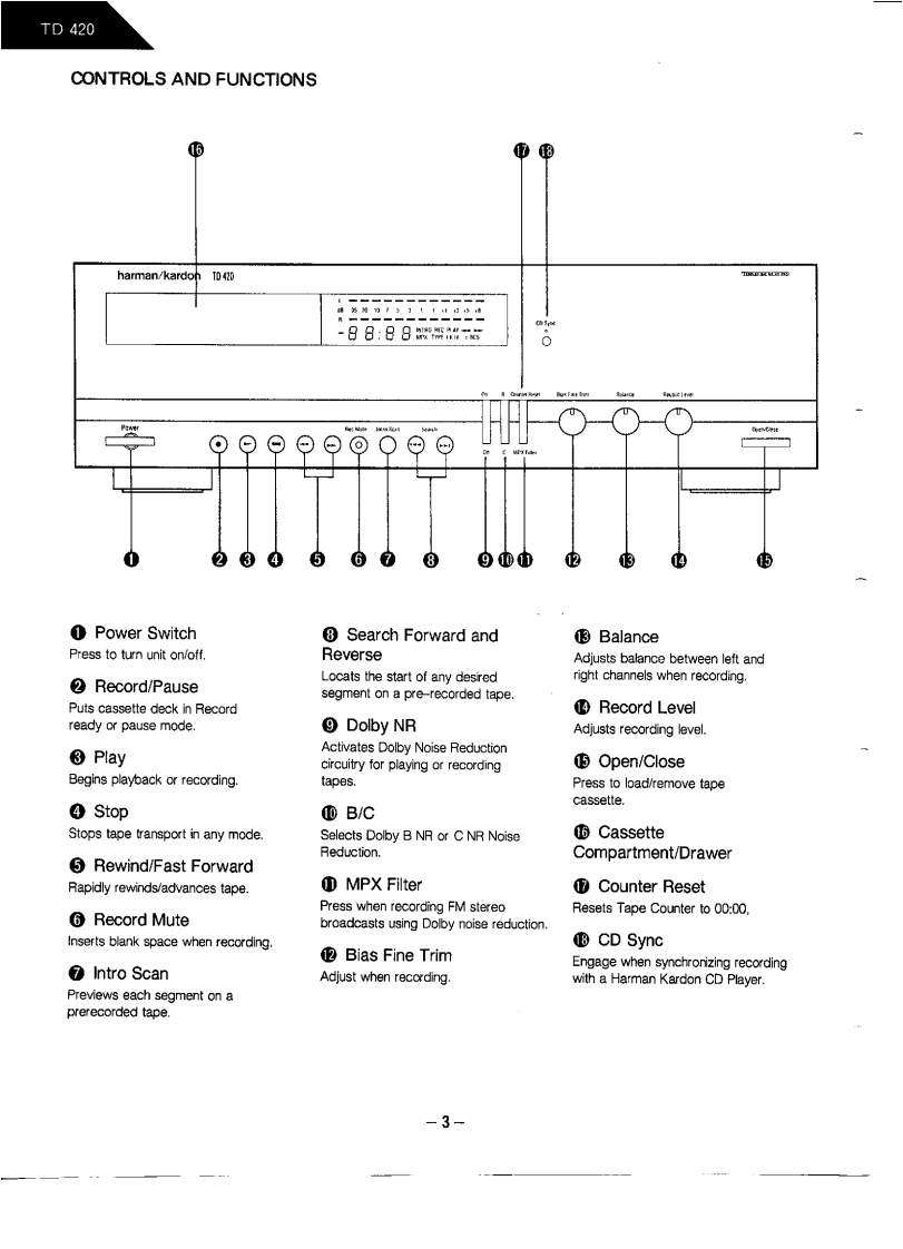 TD420The Harman KardonModel TD420ManualCD TRANSCRIPTION QUALITY CASSETTE DECKTechnical Manualharman kardon-8B:88w7rd女⊙⊙⊙⊙⊙⊙O⊙⊙The following marks found in the parts list of this manualldentify the models as follows.North America area model Black versionInternational modelInternational model Black versionharman /kardon80 Crossways Park West,Woodbury,N.Y.117971112-TD420 P-0595 800 Printed In KOREA