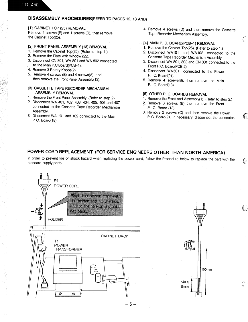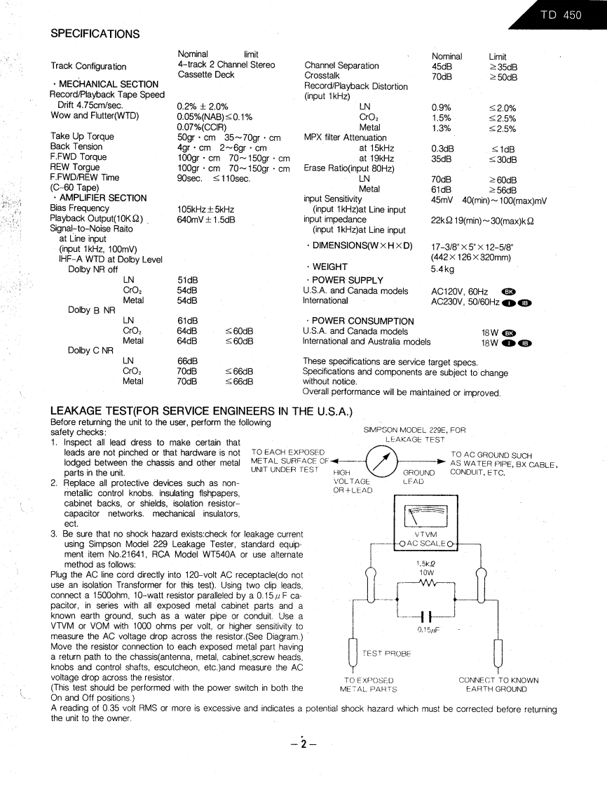 TD450The Harman KardonModel TD450Manual ACD TRANSCRIPTION QUALITY CASSETTE DECKTechnical Manualharman/kardon TD50-B日:日日aThe following marks found in the parts list of this manualldentify the models as follows.:North America area model Black versionInternational modelInternational model Black versionharman/kardon80 Crossways Park West,Woodbury,N.Y.117971112-TD450 P-1195 1200 Printed in KOREA