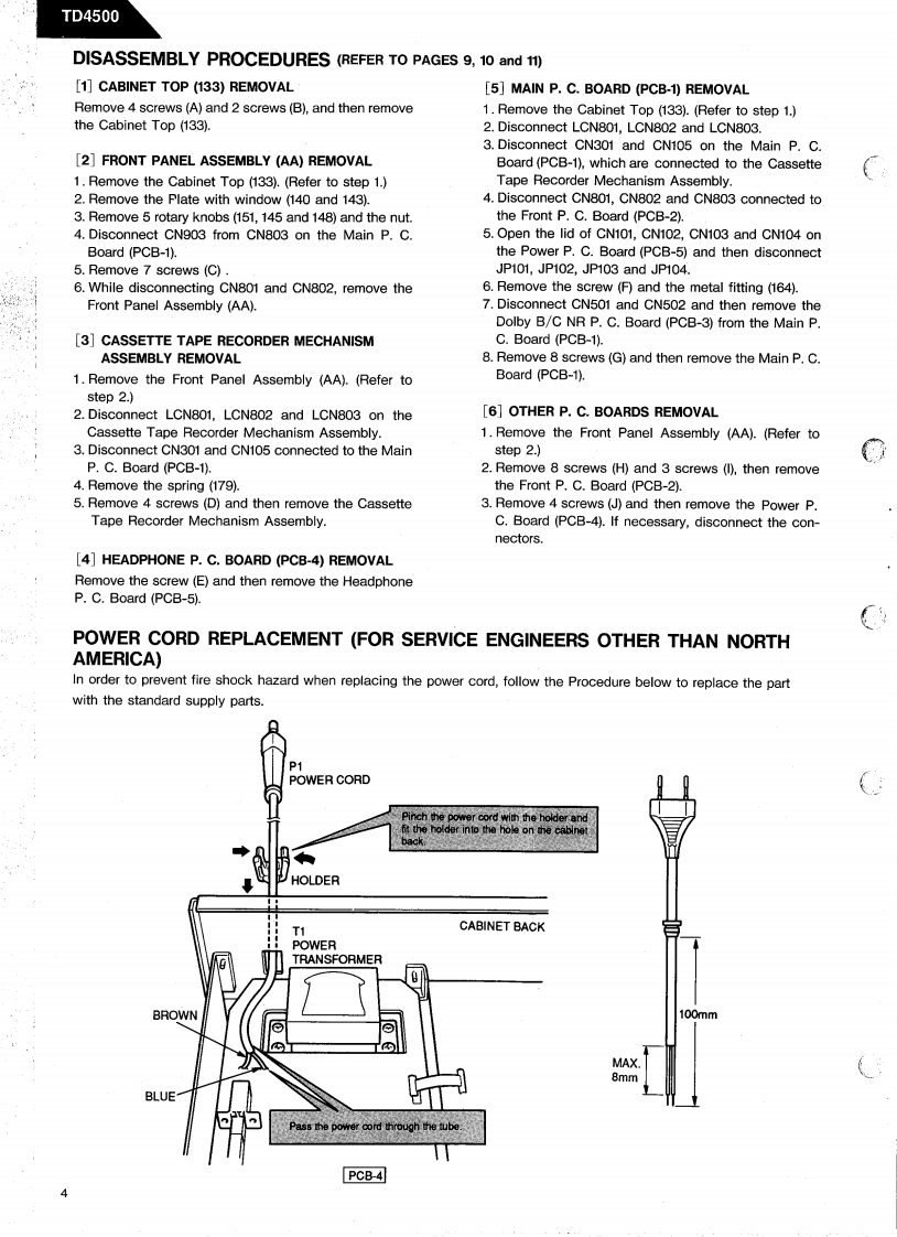 The Harman KardonModel TD4500Manual 163ACD TRANSCRIPTION QUALITY CASSETTE DECKTechnical ManualT4A.50The following marks found in the parts list of this manualidentify the models as follows.North America area modelNorth America area Black version:International model:International model Black versionharman/kardon240 Crossways Park West,.Woodbury,N.Y.117971112-3152163A6P-1190102000 Printed in Japan
