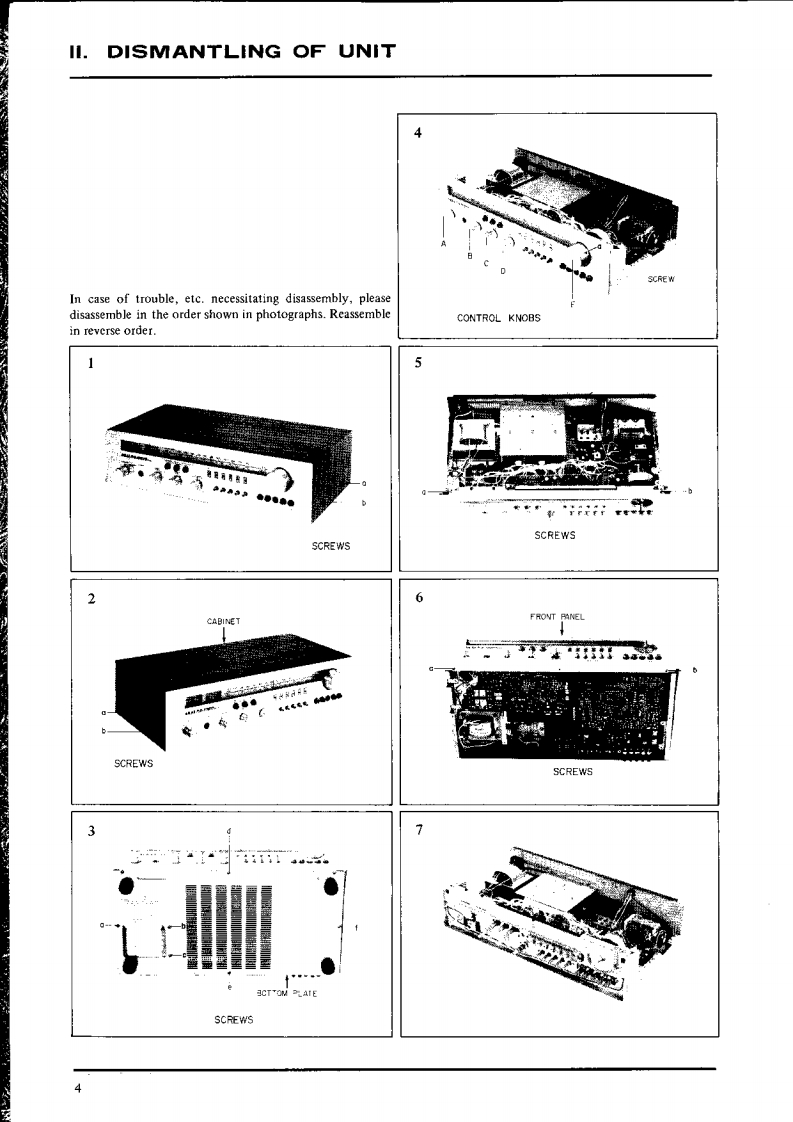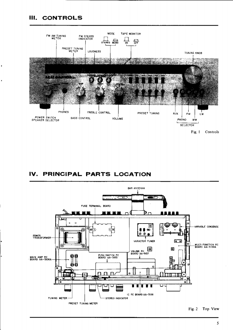 SECTION ISERVICE MANUALTABLE OF CONTENTSTECHNICAL DATA、。。。2II,DISMANTLING OF UNIT ..................................................gIU.CONTROLSIV.PRINCIPAL PARTS LOCATIONS.·,.··,···5V.VARACTOR TUNER AND PRESET TUNING SYSTEM..,·.·.,.,·,·,····61.VARACTOR TUNER ...................................................62.PRESET TUNING SYSTEM,,,···9VL.TUNER ADJUSTMENT..··.101.FM SECTION ADJUSTMENT.102.LW SECTION ADJUSTMENT.123.MW SECTION ADJUSTMENT13VIl.MAIN AMP ADJUSTMENT...·.14VIHI.TUNING CORD THREADING·····..15IX.CLASSIFICATION OF VARIOUS P.C BOARD,·,·..161.RELATION OF P.C BOARD TITLE AND IDENTIFICATION NUMBER.................162.COMPOSrTION OF VARIOUS P.C BOARD....................................17For basic adjustments,measuring methods,and operating principles,refer to GENERAL OPERATING PRINCIPLES ANDADJUSTMENTS..1