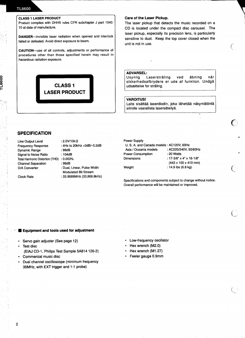 HarmanKardon-TL8600-cd-维修说明书手册含电器原理图