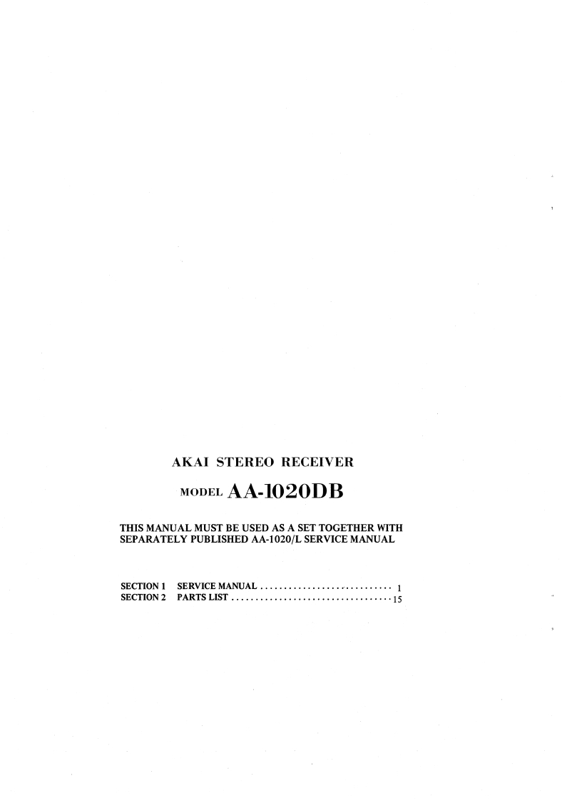 Akai-AA-1020-DB-维修电器原理图手册找手册网19小时前发布关注私信6.41MB16页034Akai-AA-1020-DB-维修电器原理图手册此内容为付费资源,请付费后查看¥19¥21黄金会员免费钻石会员免费立即购买您当前未登录!建议登陆后购买,可保存购买订单付费资源 第1页 / 共16页 第2页 / 共16页 第3页 / 共16页 第4页 / 共16页 第5页 / 共16页 第6页 / 共16页 第7页 / 共16页 第8页 / 共16页 第9页 / 共16页 第10页 / 共16页 试读已结束,还剩6页,您可下载完整版后进行离线阅读 THE ENDAKAI 文本预览 AA-1020DBSERVICE MANUALPARTS LISTMODEL AA-1020DBAKAITHIS MANUAL MUST BE USED AS A SET TOGETHER WITHSEPARATELY PUBLISHED AA-1020/L SERVICE MANUAL 查看更多 收起部分 喜欢就支持一下吧收藏